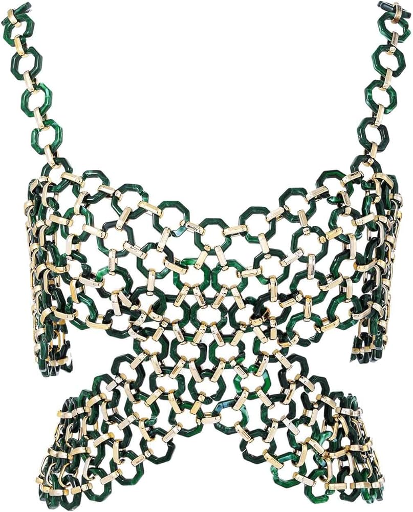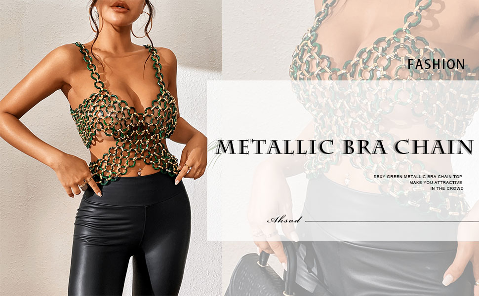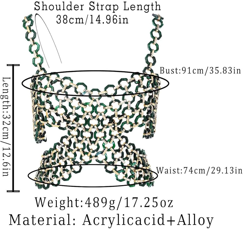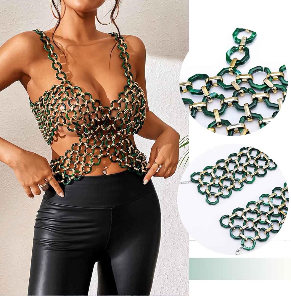 Aksod مثير الجسم سلسلة الصدرية الأعلى الأخضر لامع الصليب المحاصيل الأعلى شبكة انظر من خلال الرسن عارية الذراعين الجسم سلسلة الصدرية مجوهرات للنساء والفتيات