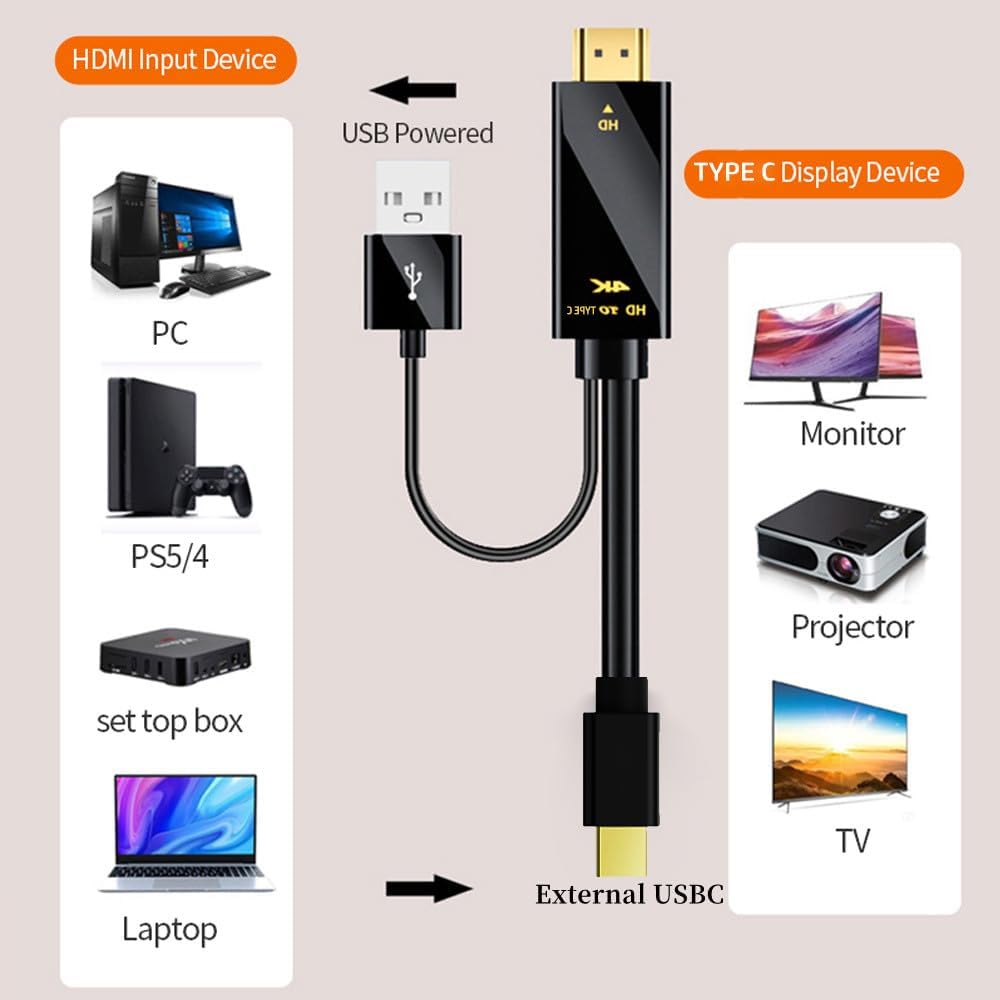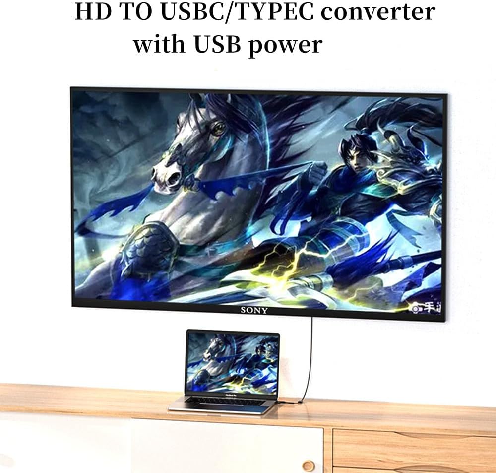The PC Host HD to USBC Cable Converter with USB is a powerful converter designed to connect a PC host laptop tablet with HD port to a monitor TV projector with external USBC port. It is also equipped with an additional USB port for power supply.