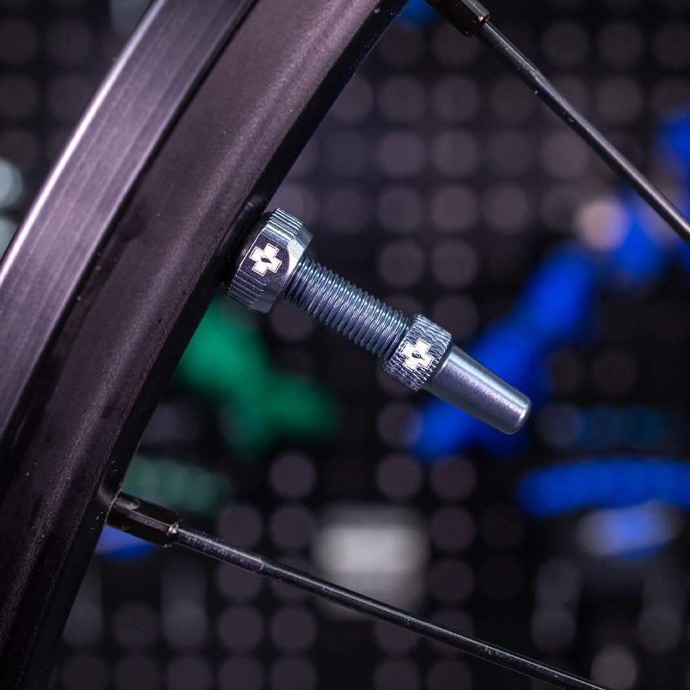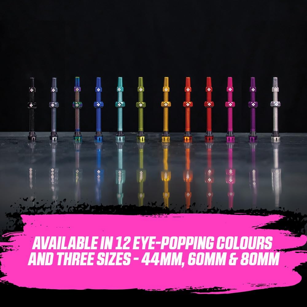 When we need durable tubeless valves we're turning to Muc-Off for their Tubeless Valve Kit. We like that we can match our bike with eight different anodized colors available, and they come in two lengths to fit both mountain and road wheels.