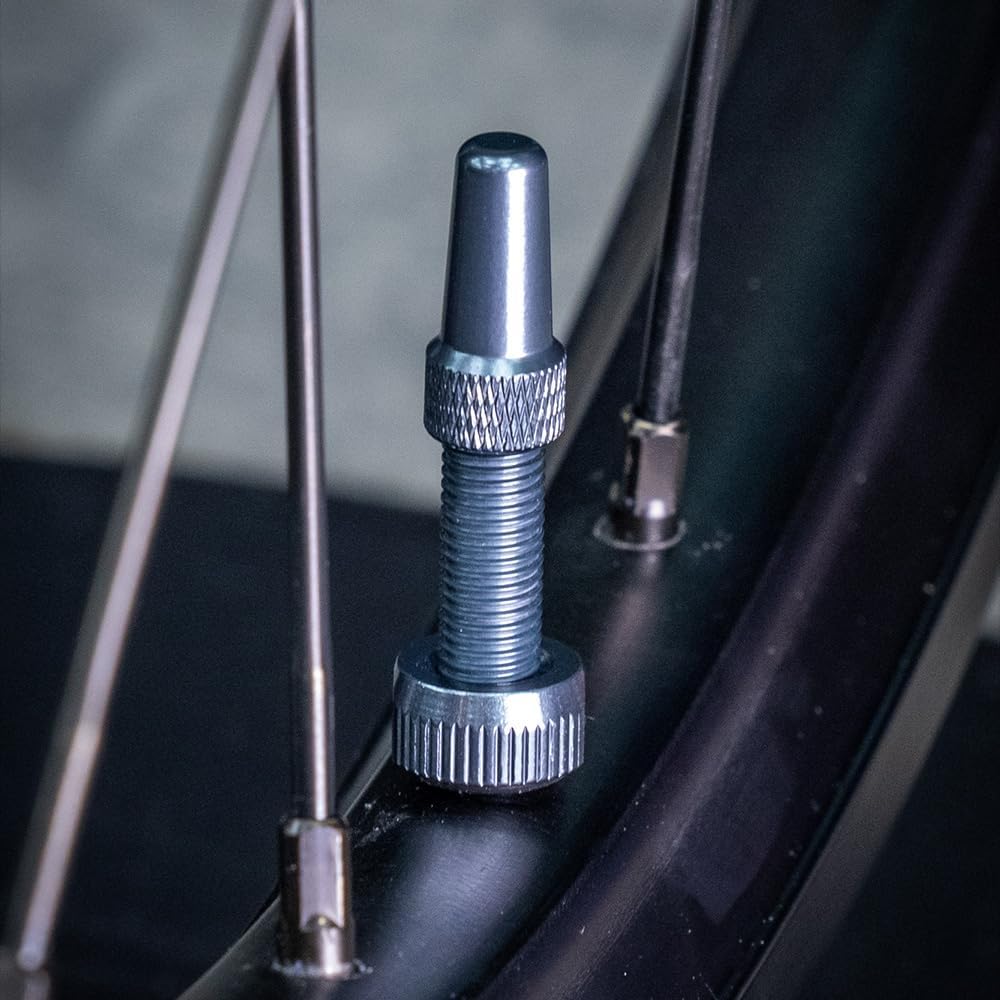 Includes: 2 tubeless valves, 2 valve caps, 2 extra round bases, 2 extra square bases, 1 valve core removal tool