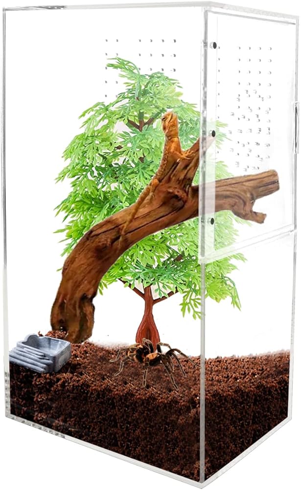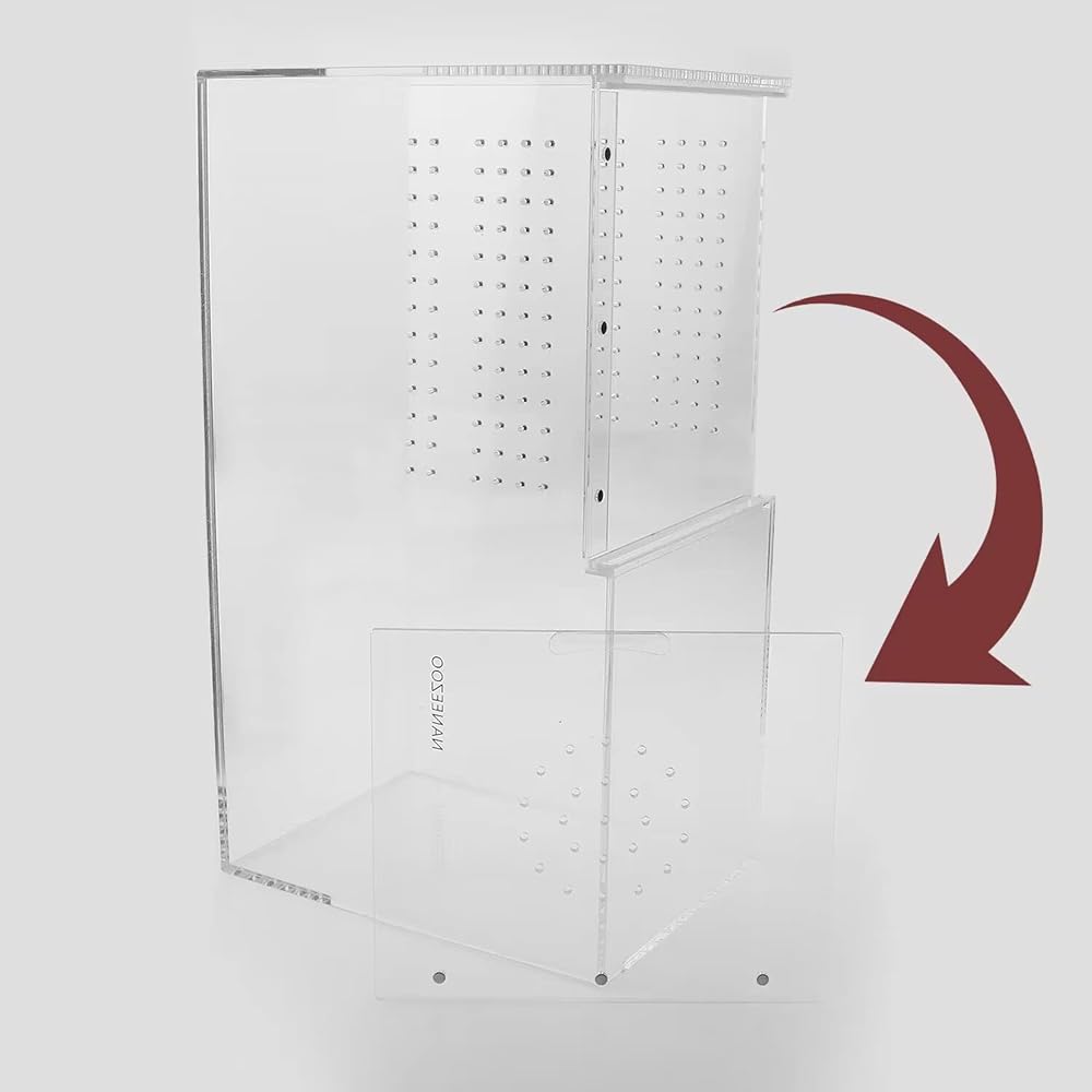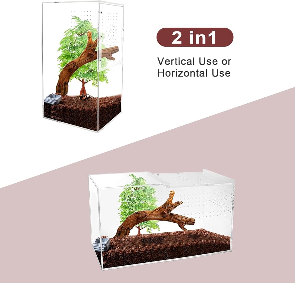 【استخدام 2 في 1: الاستخدام الأفقي والاستخدام الرأسي】لا يستخدم صندوق التربية الأكريليك هذا فقط للحيوانات الأرضية، ولكن أيضًا للحيوانات الشجرية. إذا تم وضعه عموديًا، يمكن استخدامه لتغذية الزواحف والبرمائيات والحشرات التي تعيش على الأشجار، وإذا تم وضعه أفقيًا، يمكن استخدامه لتغذية الزواحف والبرمائيات والحشرات التي تعيش على الأرض. هذا يمكن أن يساعدك على توفير المال والجهد.