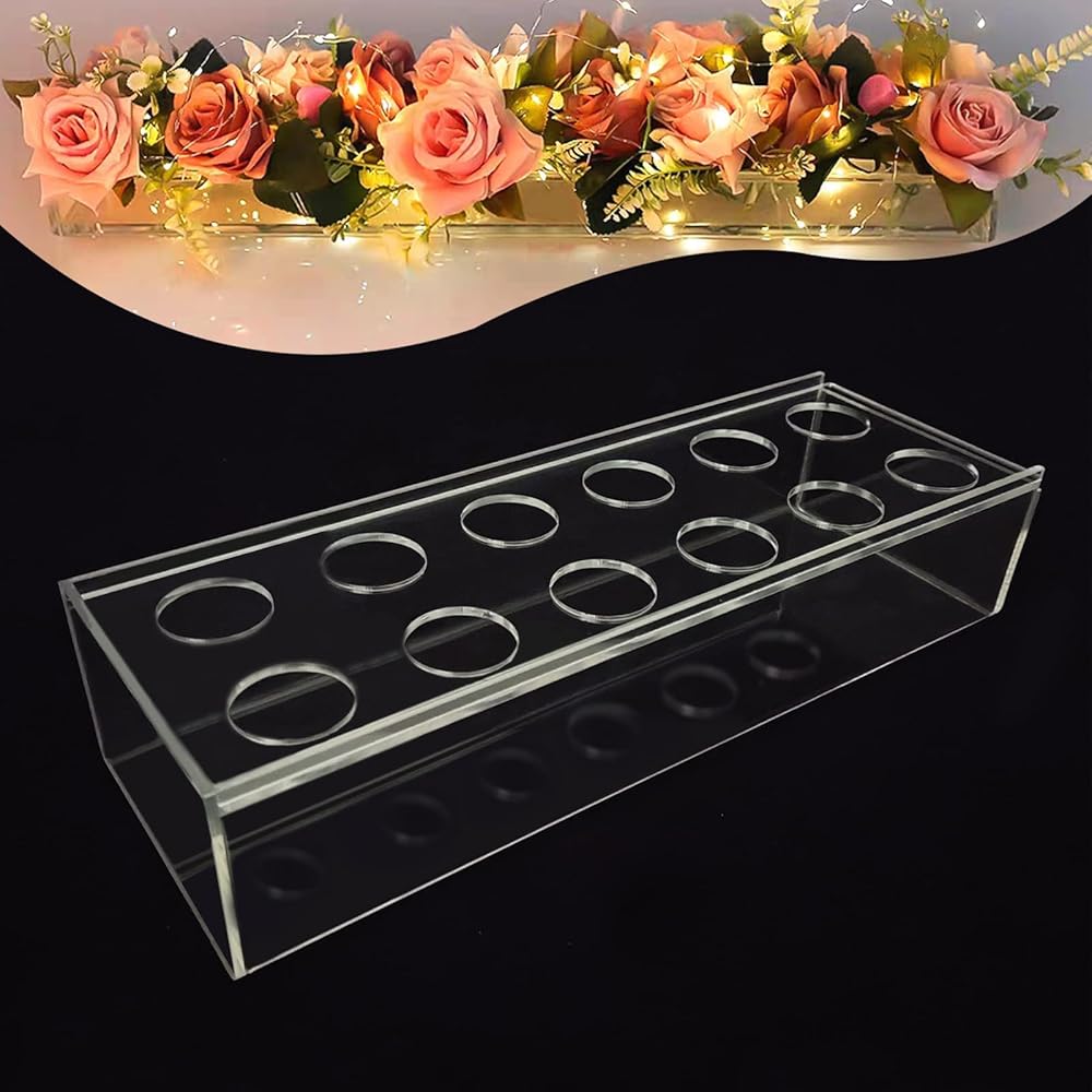 Clear Acrylic Flower Vase with Holes,Rectangular Floral Centerpieces for Dining Table,Long Vases for Flowers Modern Vase for Home Wedding Dining Table Decor