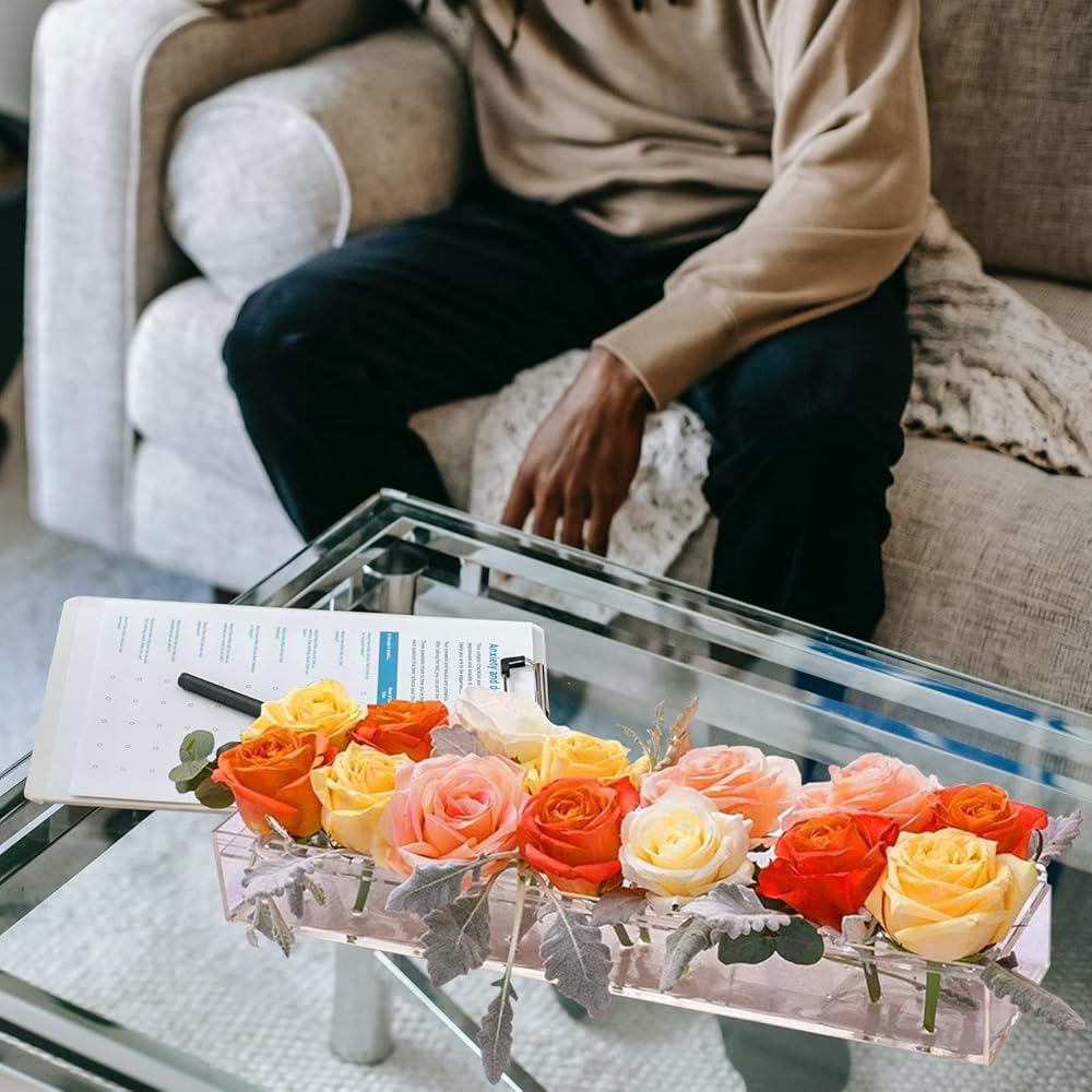 【Durable Vase】This rectangular flower vase is produced from high quality acrylic.The well polished edge make it durable than a glass vase and friendly to use in public and family with pets.