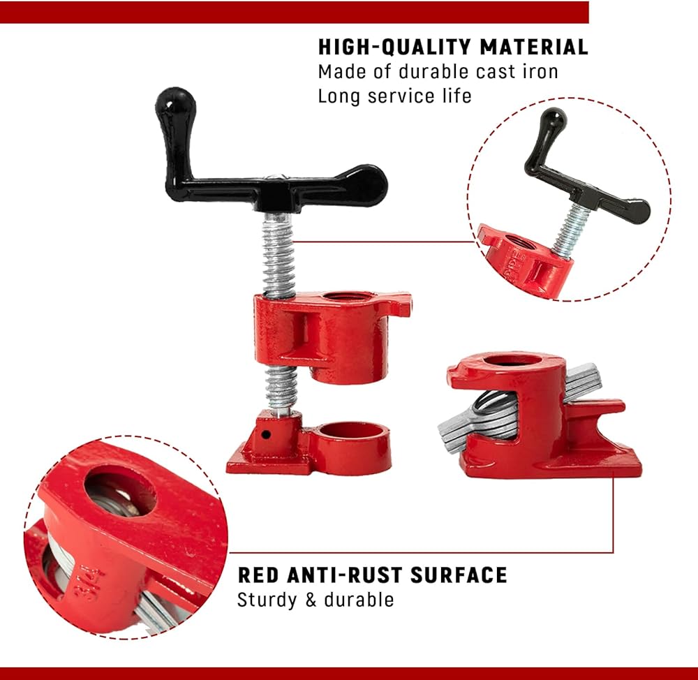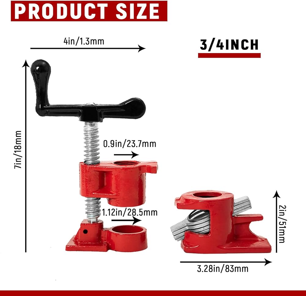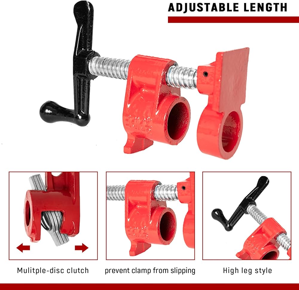 تتضمن الحزمة: تحتوي كل مجموعة على 8 مشابك أنابيب النجارة مصممة لأنابيب ملولبة مقاس 3/4 بوصة.