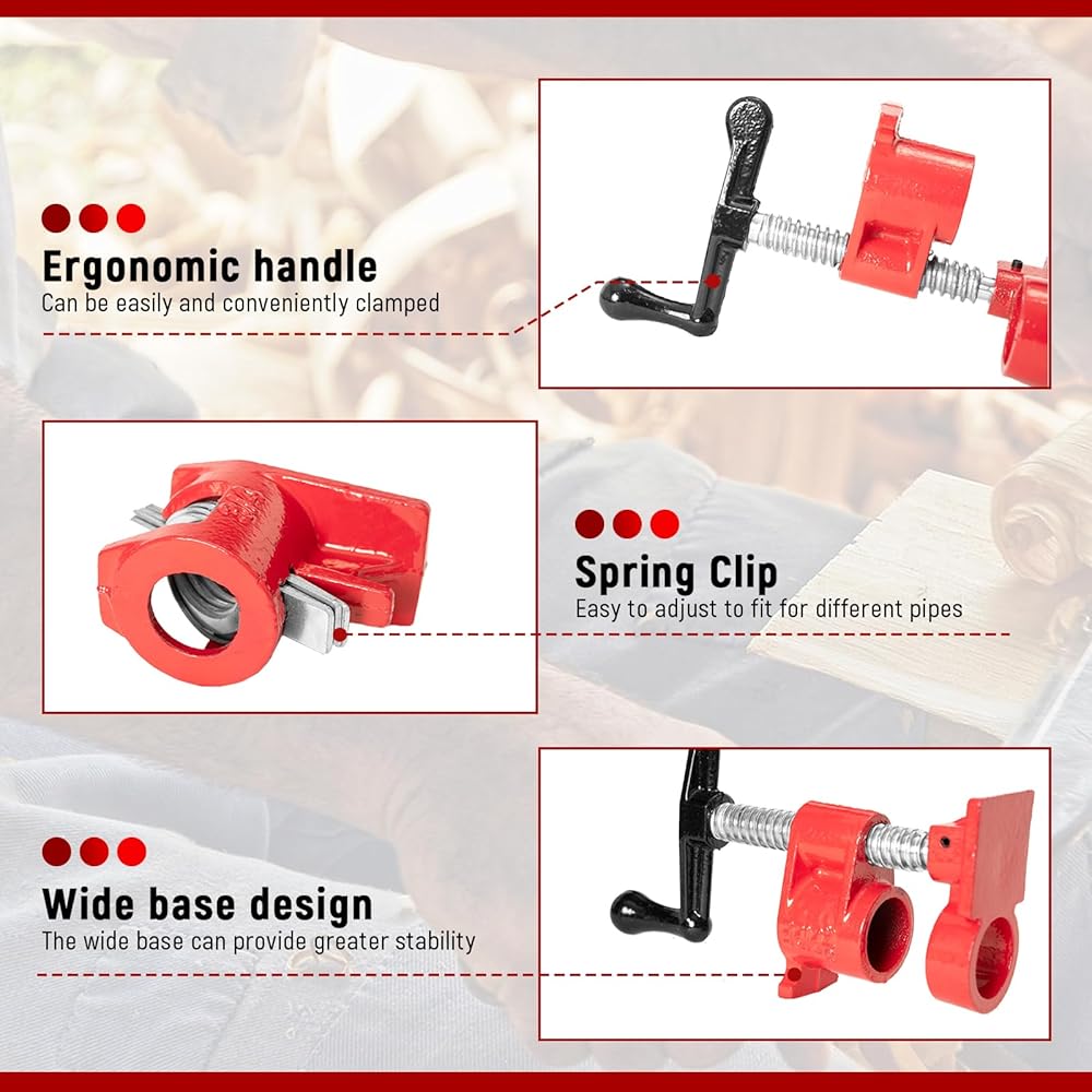 رفيق احترافي للأعمال الخشبية: تم تصميم مشابك أنابيب DUPDMKIN للاستخدام مع أي طول يبلغ 3/4 بوصة، مما يوفر حلاً احترافيًا وفعالاً لإطلاق يديك وتعزيز كفاءة الأعمال الخشبية.