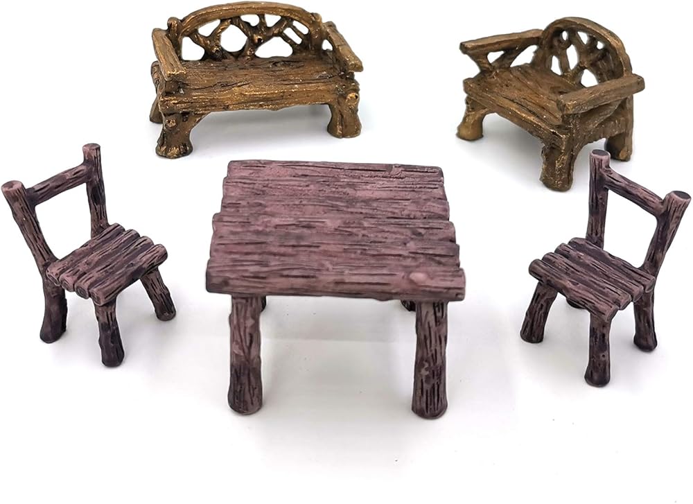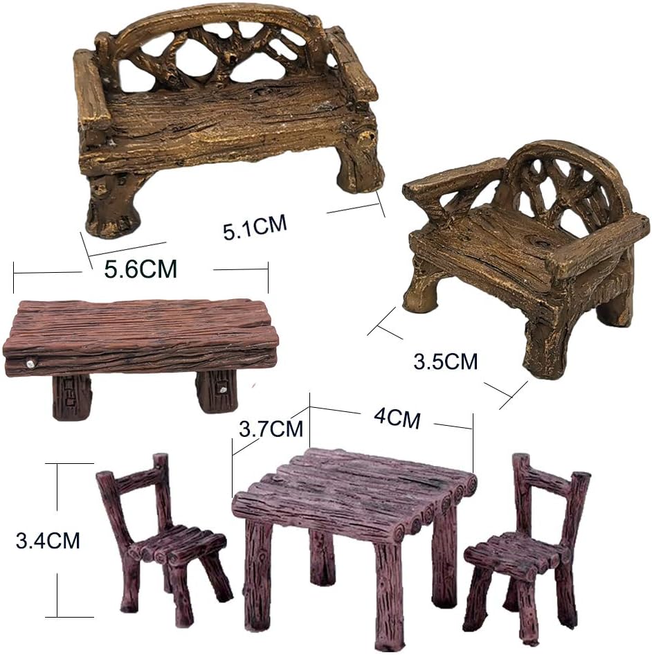 مجموعة طاولات وكراسي مصغرة من تراسفيت مكونة من 6 قطع، مجموعة زخارف مقاعد أثاث الحديقة الجنية لإكسسوارات بيت الدمى، ديكور المناظر الطبيعية الصغيرة للمنزل (النمط ب)