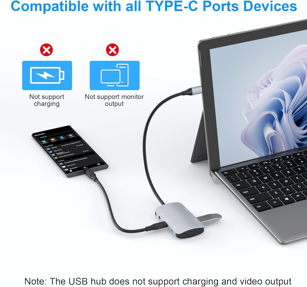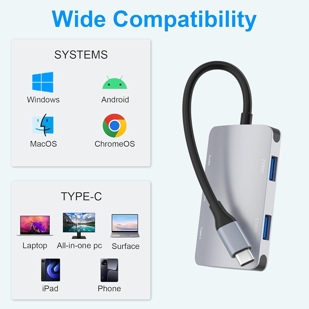 • 【مقسم USB C بـ 5 منافذ】يحول محور USB C إلى USB C منفذ USB-C للكمبيوتر المحمول الخاص بك إلى منفذي بيانات USB-C 3.2 و2 USB-A 3.2، ويبني مقبس صوت 3.5 مم. قم بتوصيل جميع أجهزة USB الطرفية الخاصة بك بشكل مثالي في سير عملك اليومي لتلبية احتياجاتك الحالية والمستقبلية.