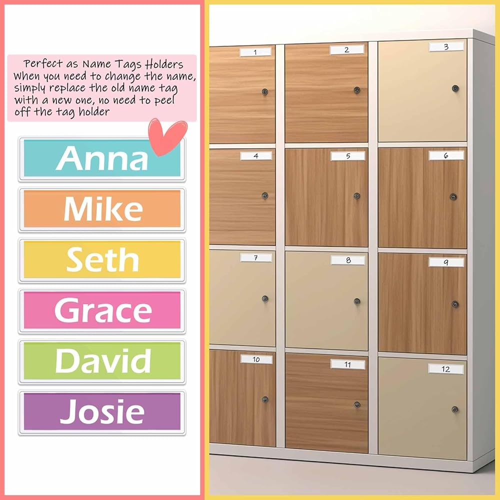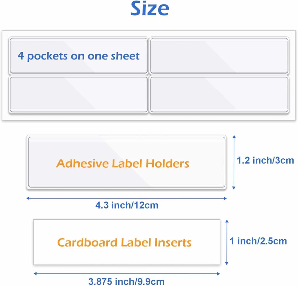 [حاملات الملصقات المستخدمة على نطاق واسع] يمكنك استخدامها تقريبًا على أي شيء تحتاجه لوضع الملصق عليه. يمكن أن تلتصق جيوب الملصقات اللاصقة بسطح أملس جيدًا، ومناسبة للبلاستيك والخشب والمعادن والكرتون والزجاج والورق وما إلى ذلك. ملصقات أرفف لاصقة مثالية للأرفف الخشبية، مثل رف الكتب، والخزانة، والخزانة، وصناديق البريد، والمكعبات، والخزائن، ورف الخزانة... إلخ. مثالية كملصقات للأدراج، وعلامات الأسماء، وملصقات صناديق التخزين... كما يمكنك التمسك بغطاء ملفك ، كتاب، وثيقة مباشرة.