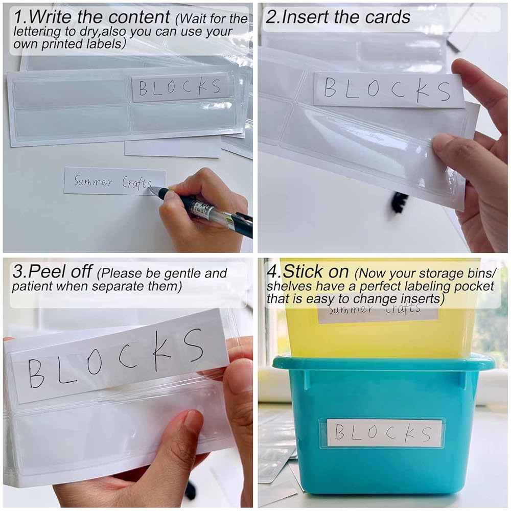 [سهل الاستخدام] تم تصميم حامل ملصق الرف ليتم فتحه من الجانب الطويل، ومن السهل إدخال/تغيير العلامات/الملصقات. ثم قم بلصق الجيوب اللاصقة على منتجك. الآن تحتوي العناصر الخاصة بك على جيب ملصق بمظهر احترافي. يعمل اللاصق بشكل جيد، وليس من السهل أن يسقط. عندما لا تحتاج إلى حاملات الملصقات هذه، يمكن أيضًا خلعها بسهولة. يرجى ملاحظة أنها ستلتصق بصناديق القماش/القماش، ولكنها لا تلتصق جيدًا.