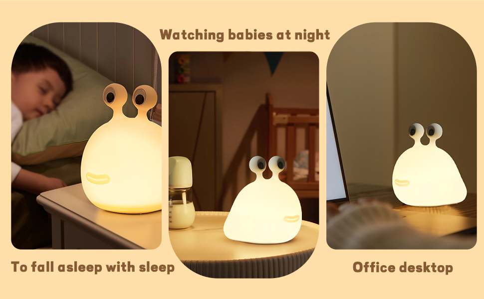 🐌تصميم لطيف وممتع: تم تصميم الضوء الليلي على شكل حيوان لطيف، اضغط بلطف على العينين بيدك لتتصادم مع بعضها البعض، يمكنك بسهولة تشغيل/إيقاف الضوء الليلي، كما يمكن الضغط على العينين لفترة طويلة. اضبط السطوع، سيحب الأطفال هذا الرجل الصغير اللطيف والمضحك!