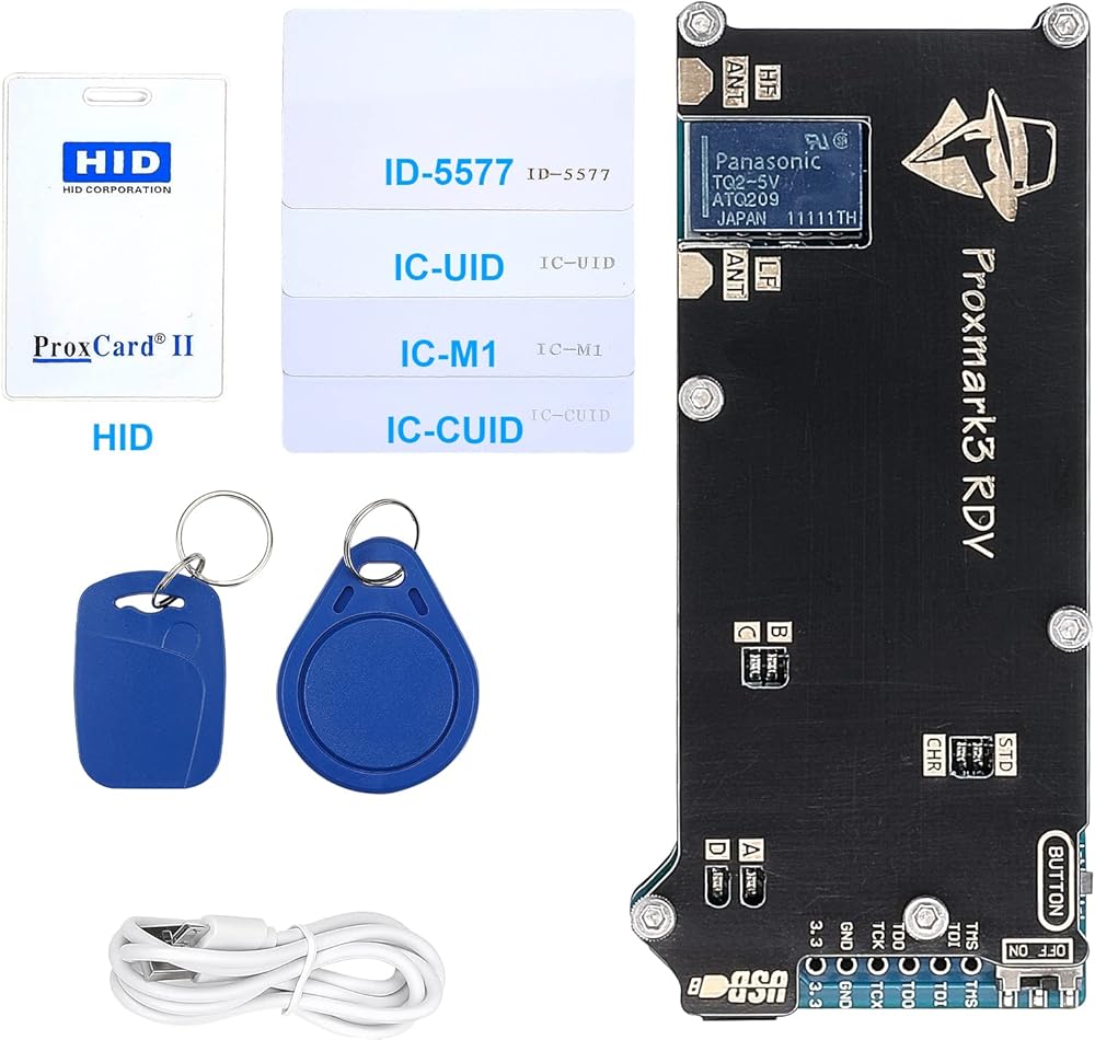هذا المبرمج proxmark 3 rfid للقراءة والكتابة والاستنساخ والنسخ وعلامات RFID محاكاة ساخرة تبلغ 13.5 ميجاهرتز و125 كيلوهرتز، بما في ذلك HID وIndala وT55xx وMiFare Classic / 1k والمزيد. تستخدم بطاقات RFID والأبواب النموذجية للشقق والعمل والجراجات والبوابات والأبواب الأخرى هذه التقنيات، حتى تتمكن من عمل نسخ.