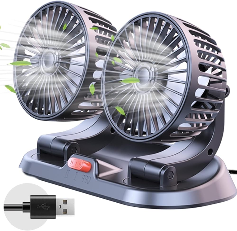 Dual Head Design - With two fans that can be independently adjusted 360 degrees, you can direct the airflow exactly where you need it. This makes it perfect for both driver and passenger use.