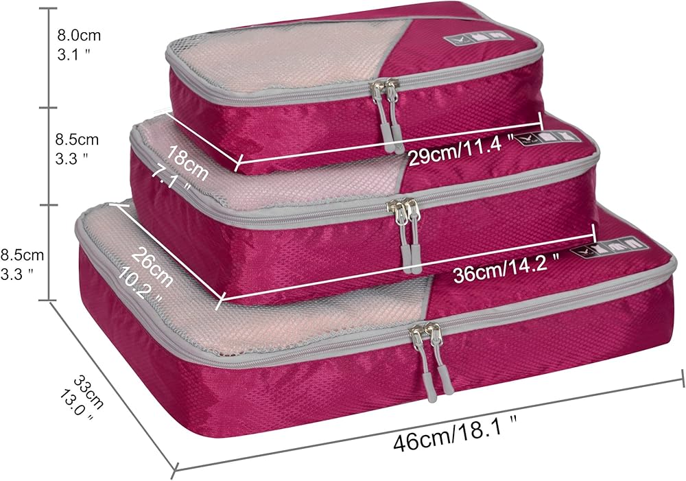 Hynes Eagle 3 Pieces Packing Cubes Set Travel Luggage Organizer Bag Red Violet Hynes Eagle 3 Pieces Packing Cubes Set Travel Luggage Organizer Bag Grey