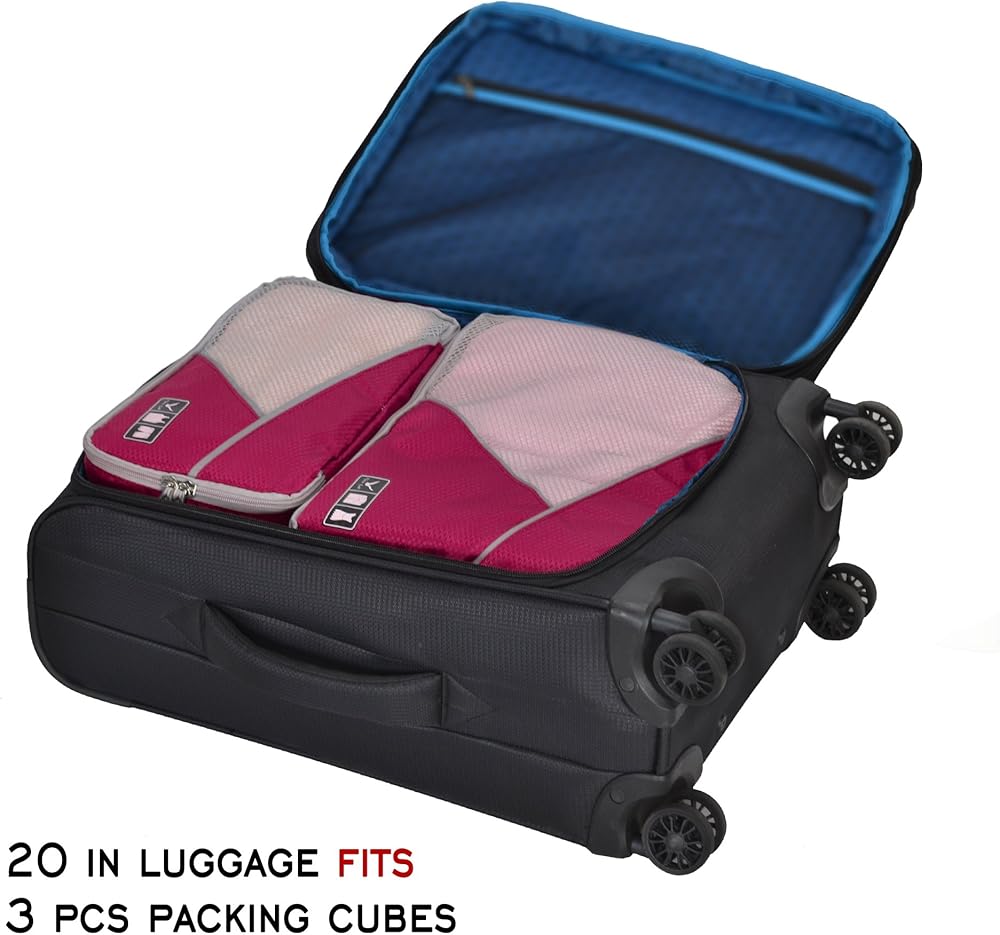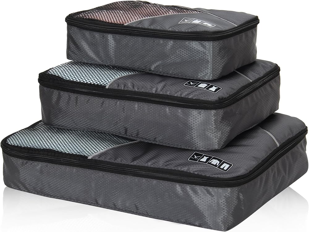 3 Set of packing cubes help to organize your luggage, allow you to be more creative to pack your necessities, from jeans to shirts, without damage and wrinkled