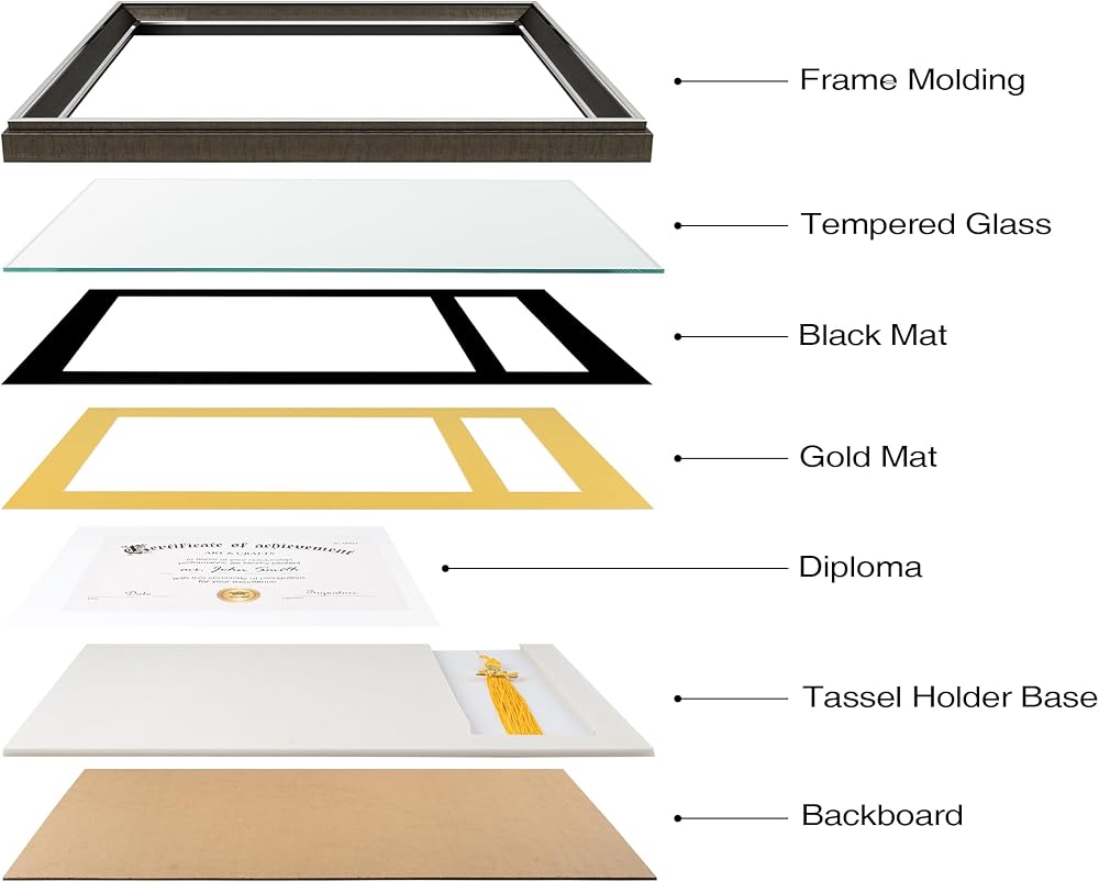 【STURDY & BUILD TO LAST】Made of high-strength new polystyrene, wide molding with High-Definition lead-free tempered real glass and acid-free black and gold mat which will be a long-lasting way to showcase and protect your diploma, degree, certificate, award from scratching, dust and moisture.