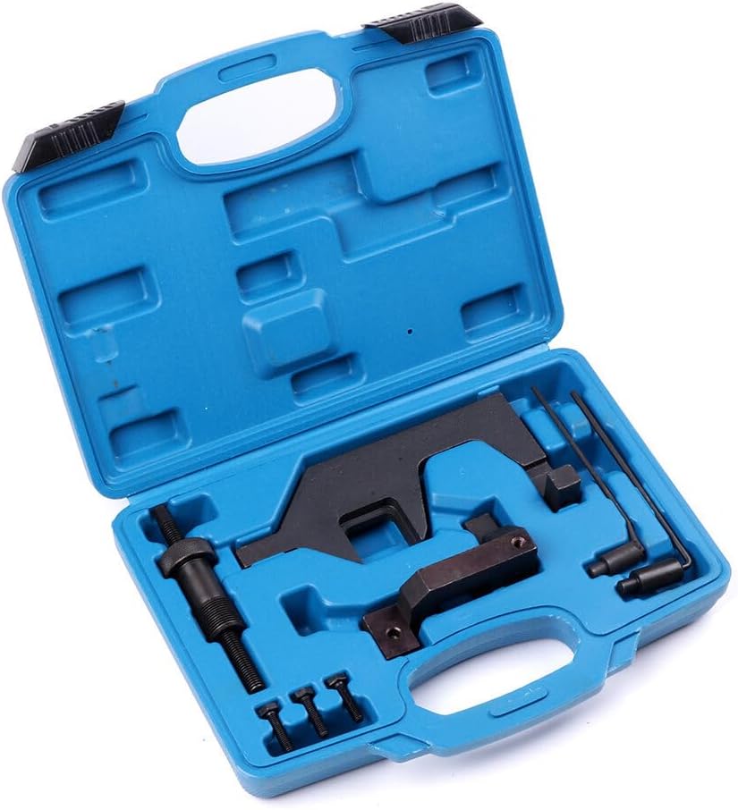 Applications: for BMW N13 N18 1.6 Gas Engines for BMW 114i, 116i, 118i, 316i for BMW for Mini Cooper Specifications: Material: Heavy Duty Steel Condition: 100% New Package Including: 2x Locking Fixtures with Hold-Down Bolts 2x Crankshaft Locking Pins 1x Timing Chain Pre Tensioner Tool