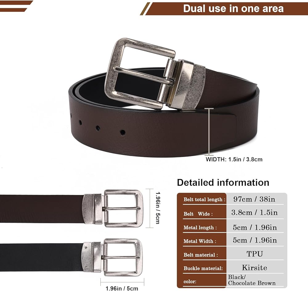 حزام واحد بلونين: الحزام الجلدي ذو الوجهين للرجال من GLITZALL ذو وجهين وله جانب أسود وجانب بني. يمكنك شراء حزام واحد والحصول على حزام رجالي أسود وحزام رجالي بني بسعر حزام واحد.
