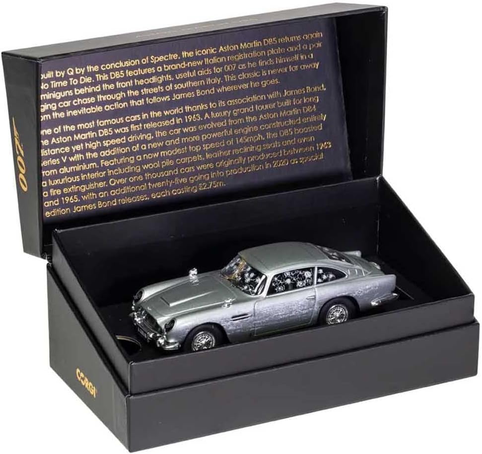 • Since the first James Bond film, Dr. No in 1962, the renowned British secret Agent 007 has owned a string of iconic cars, from the classic Aston Martin DB5 to the submersible lotus Esprit. Corgi has continued to produce a impressive selection of classic and modern James Bond cars to re-recreate those action-packed moments from the nostalgic to the present day bonds.