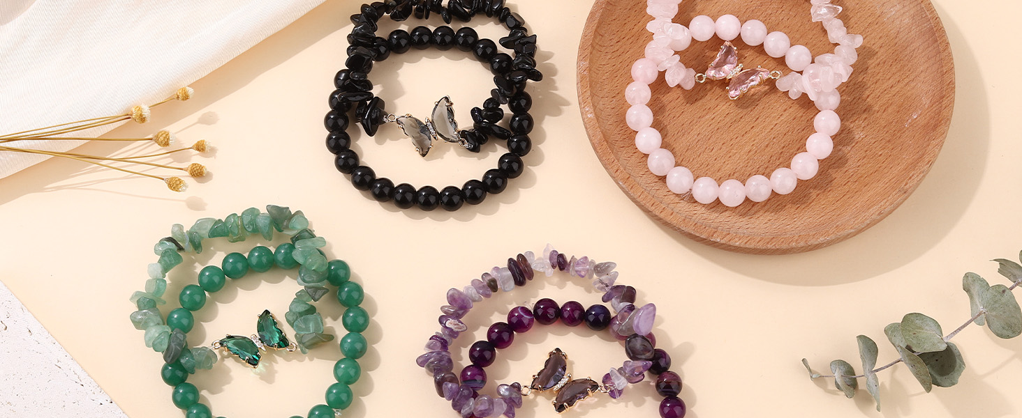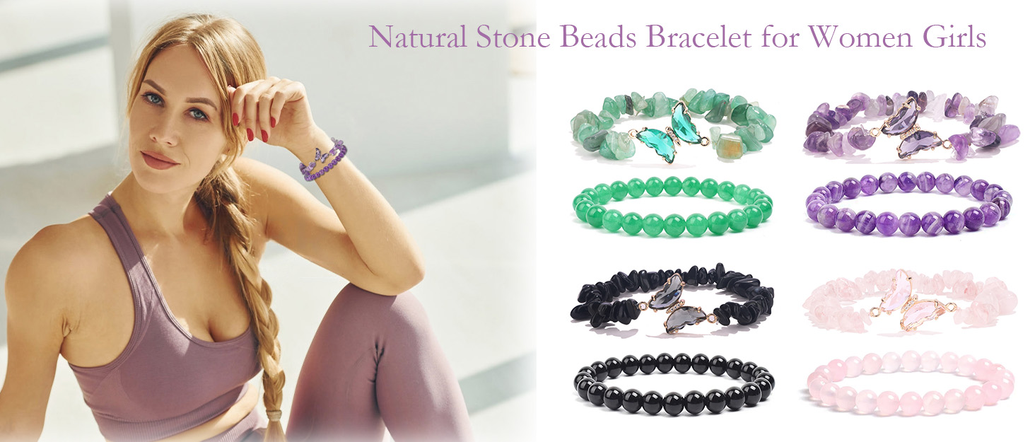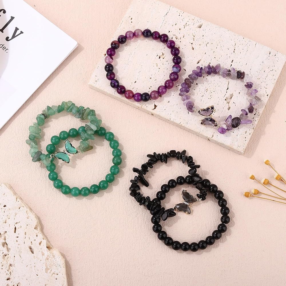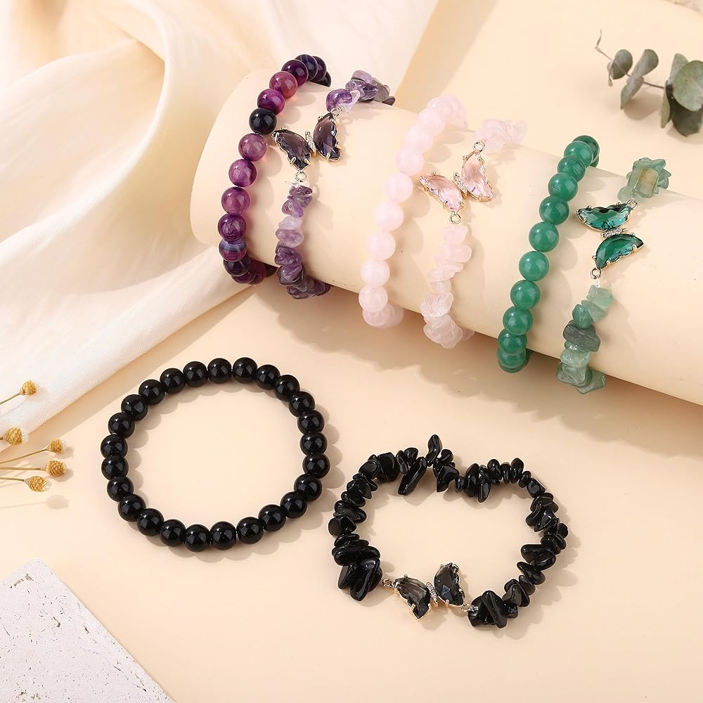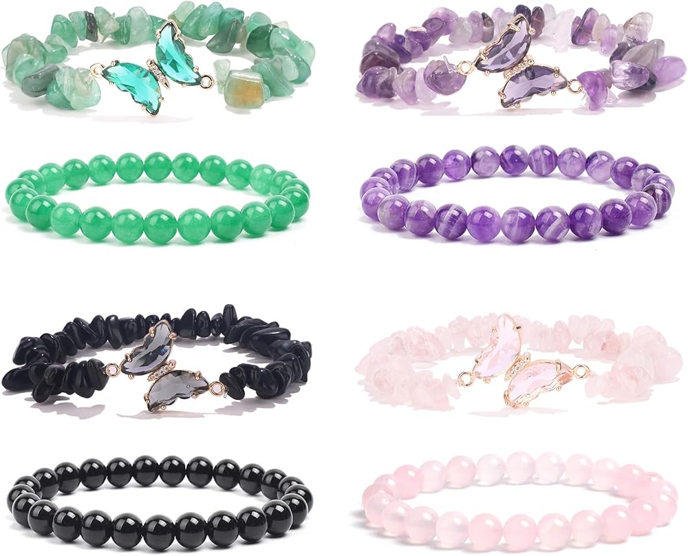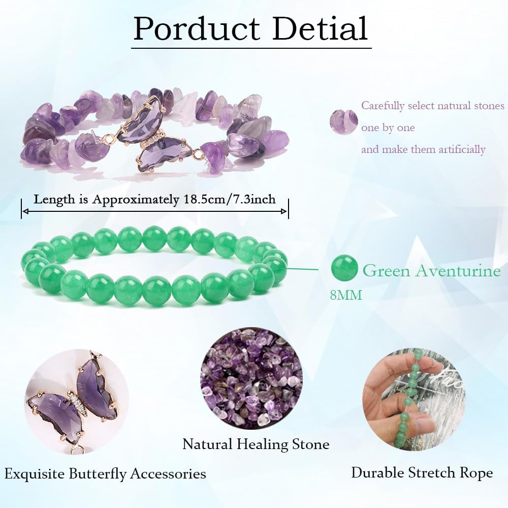 أساور كريستال علاجية: عبوة واحدة تحتوي على 8 قطع من أساور الكريستال المختلفة، بما في ذلك سوار الجمشت، وسوار السج، وسوار الكوارتز الوردي، وسوار أفينتورين الأخضر. أتمنى أن تتحسن حياتك مع هذه الأساور العلاجية.