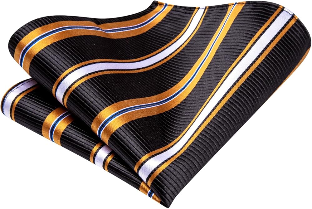 مجموعة ربطات عنق رسمية مخططة للرجال من Hi-Tie باللونين الأسود والذهبي مع أزرار أكمام منديل وربطة عنق حريرية لحفلات الزفاف والحفلات الراقصة