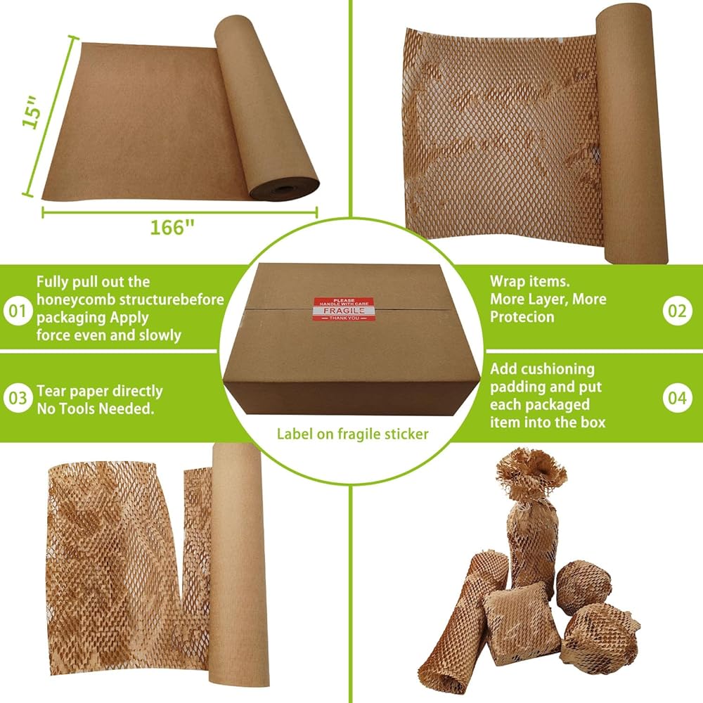 【SUSTAINABILITY FIRST】: Bid farewell to environmentally costly bubble wrap with this 100% recyclable kraft honeycomb packing paper roll, an eco-conscious choice for packing and shipping.