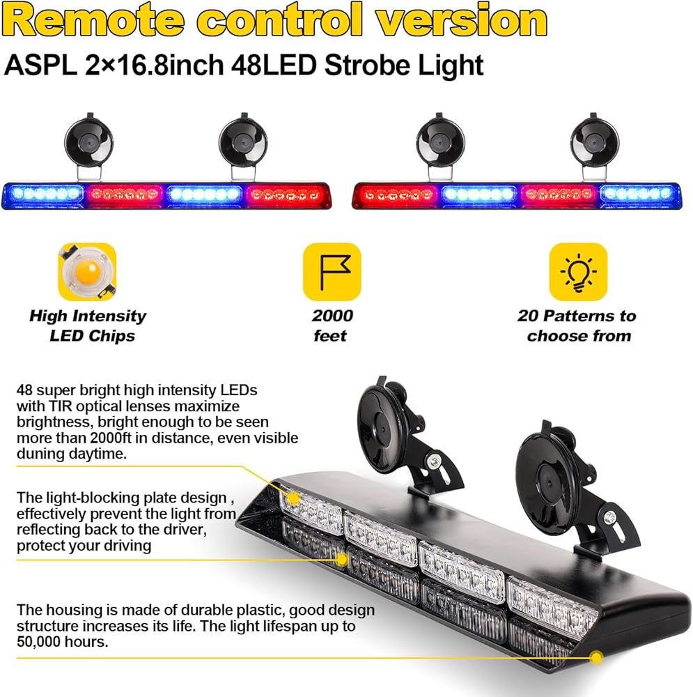 🔥【جودة عالية】الهيكل مصنوع من مواد عالية الجودة وهيكل جيد. أكثر من 50,000 ساعة من العمر المتوقع مع استهلاك طاقة أقل من المصابيح القياسية. تصميم الغطاء المتكامل الفريد، يمنع الضوء بشكل فعال من الانعكاس مرة أخرى إلى السائق، ويحمي قيادتك. إنه خيار رائع لرجال الإطفاء، وحرث الثلج، وتحذير السلامة، ومركبات الطوارئ، وعمال المرافق، والخدمة البريدية، ومركبات البناء، إلخ.
