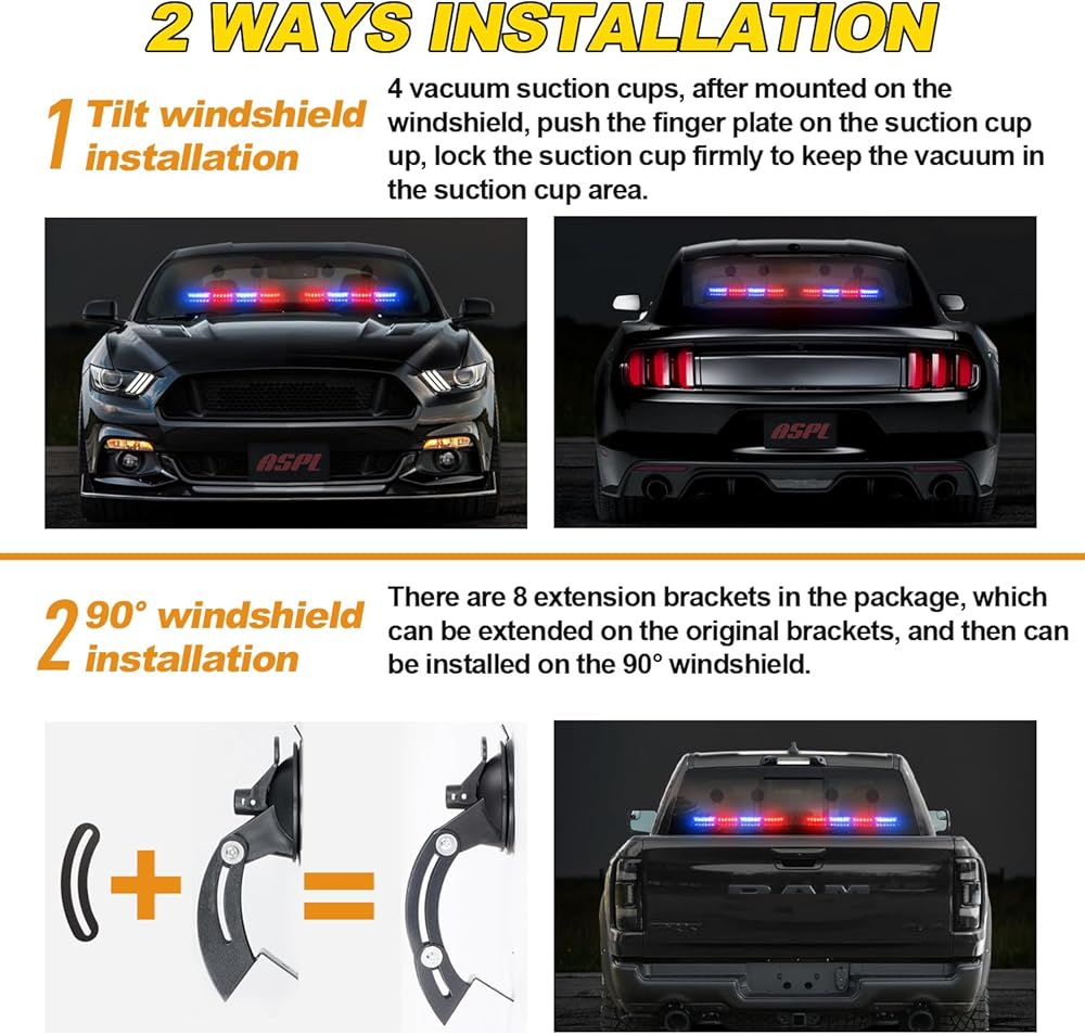 🔥تركيب الزجاج الأمامي بزاوية 90 درجة: توجد 8 دعامات تمديد في العبوة، والتي يمكن تمديدها على الدعامات الأصلية، ثم يمكن تركيبها على الزجاج الأمامي بزاوية 90 درجة. يمكن أيضًا تركيب أي سطح أفقي أو مائل أو رأسي، ويمكن استخدامه بطرق متعددة. مثالي لتطبيقات المركبات الأمامية أو الخلفية للعمل كمستشار لحركة المرور أو سطح السفينة أو ضوء لوحة القيادة. قبل التثبيت، يرجى ضبط الزاوية التي تحتاج إليها.
