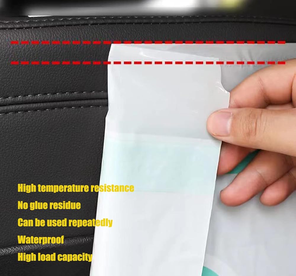 الراحة - يمكن وضع الحقيبة على أي سطح. يعد الشريط الشريطي ذاتي اللصق مناسبًا تمامًا لإبقاء الحقيبة معلقة على السطح دون ترك بقايا غراء وأثر عند فصلها. يمكن تعليقها على مسند رأس مقعد السيارة، ولا تحتاج إلى مساحة أكبر لتخزين الحقائب.