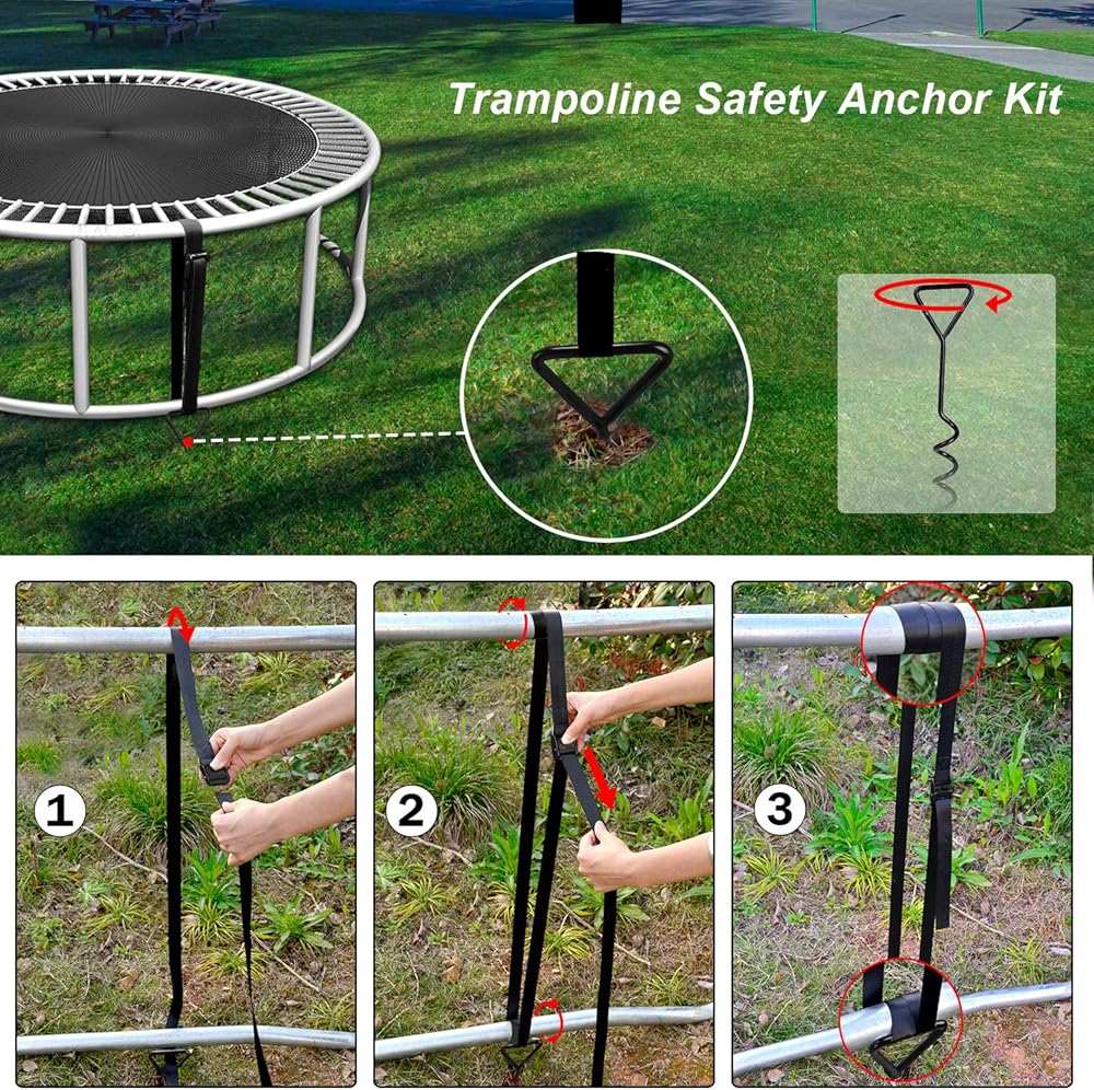• This trampoline anchor kit can hold down your trampoline to the ground firmly during windy weather, it is a good invest to protect your trampoline for a long-term use.
