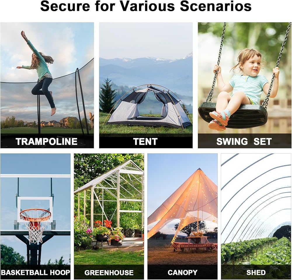 MULTIFUNCTION: Protect your trampolines, swing sets, basketball hoop, sheds, canopies, tents, fences, trees in high wind weather.