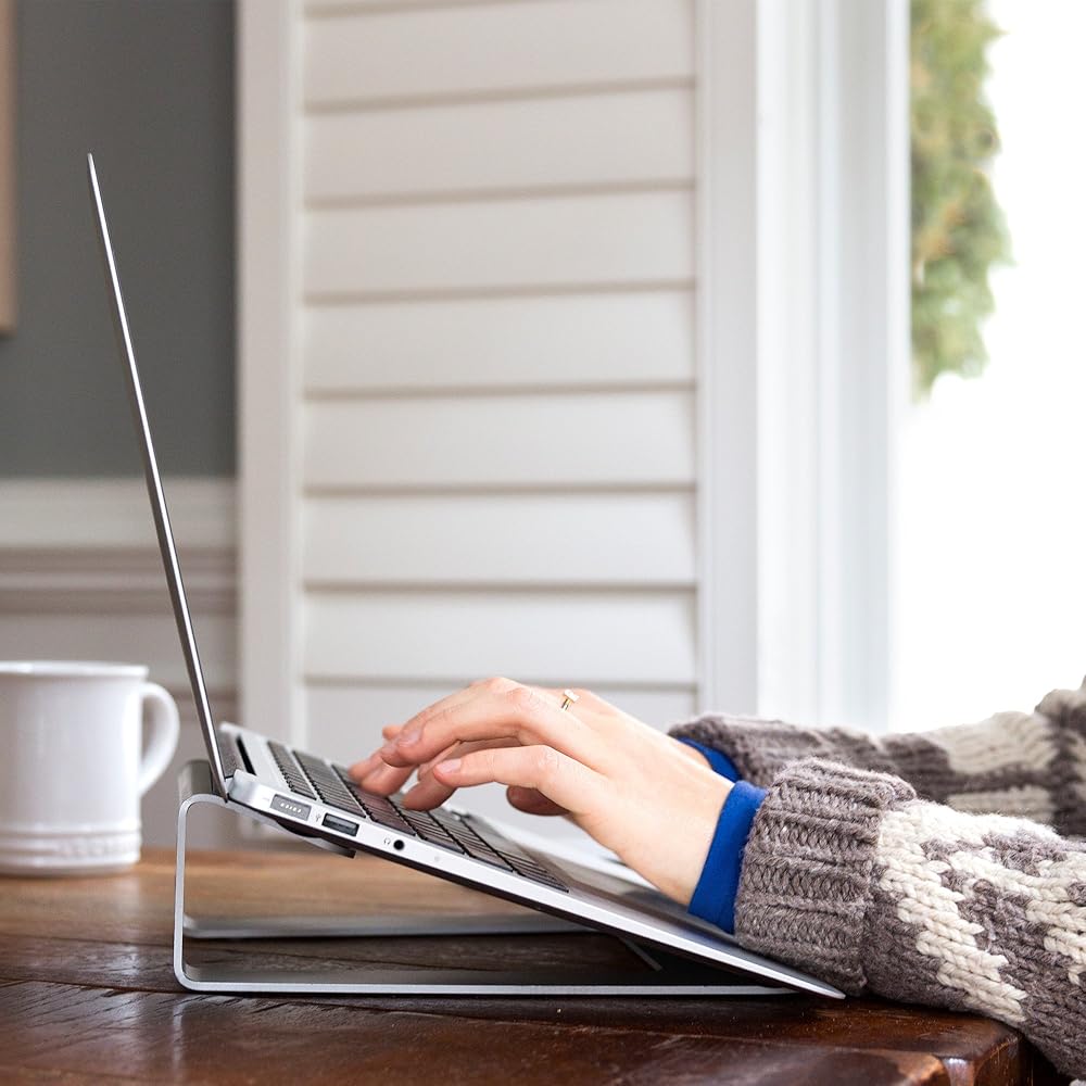 Elevates MacBook screen for a more comfortable, neck-friendly tilt versus laying flat on a surface