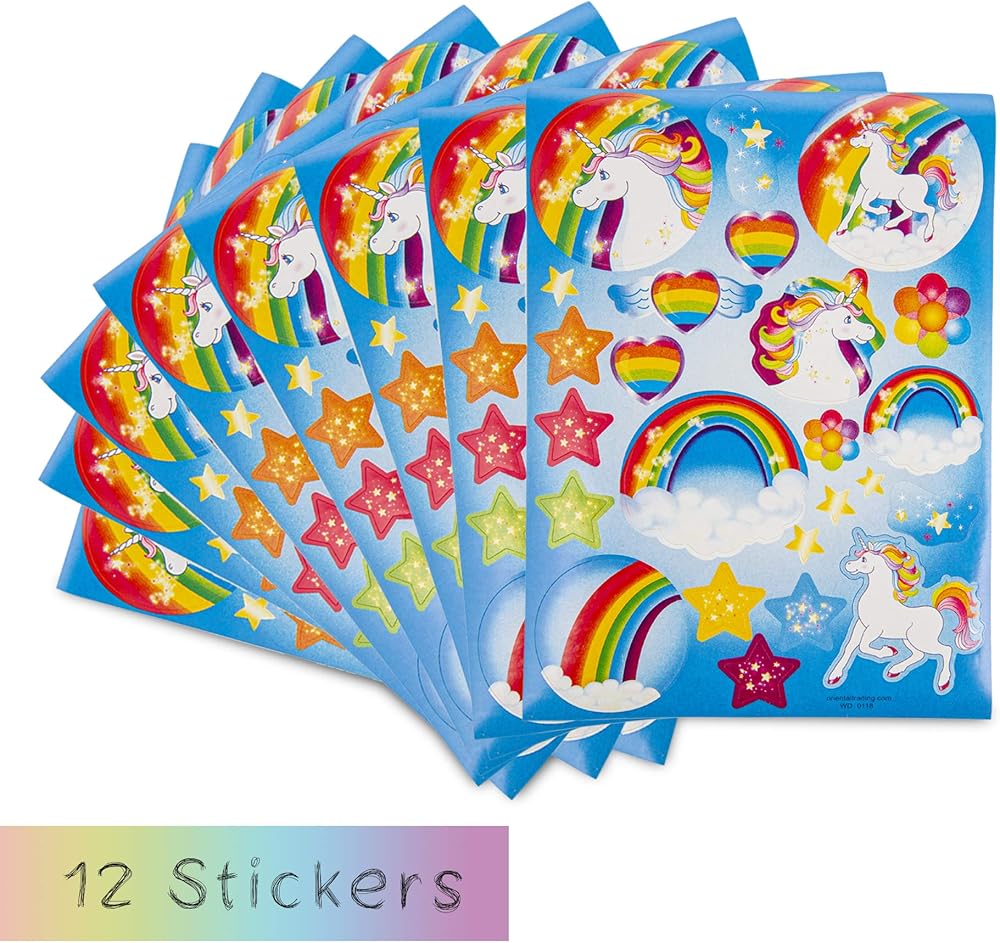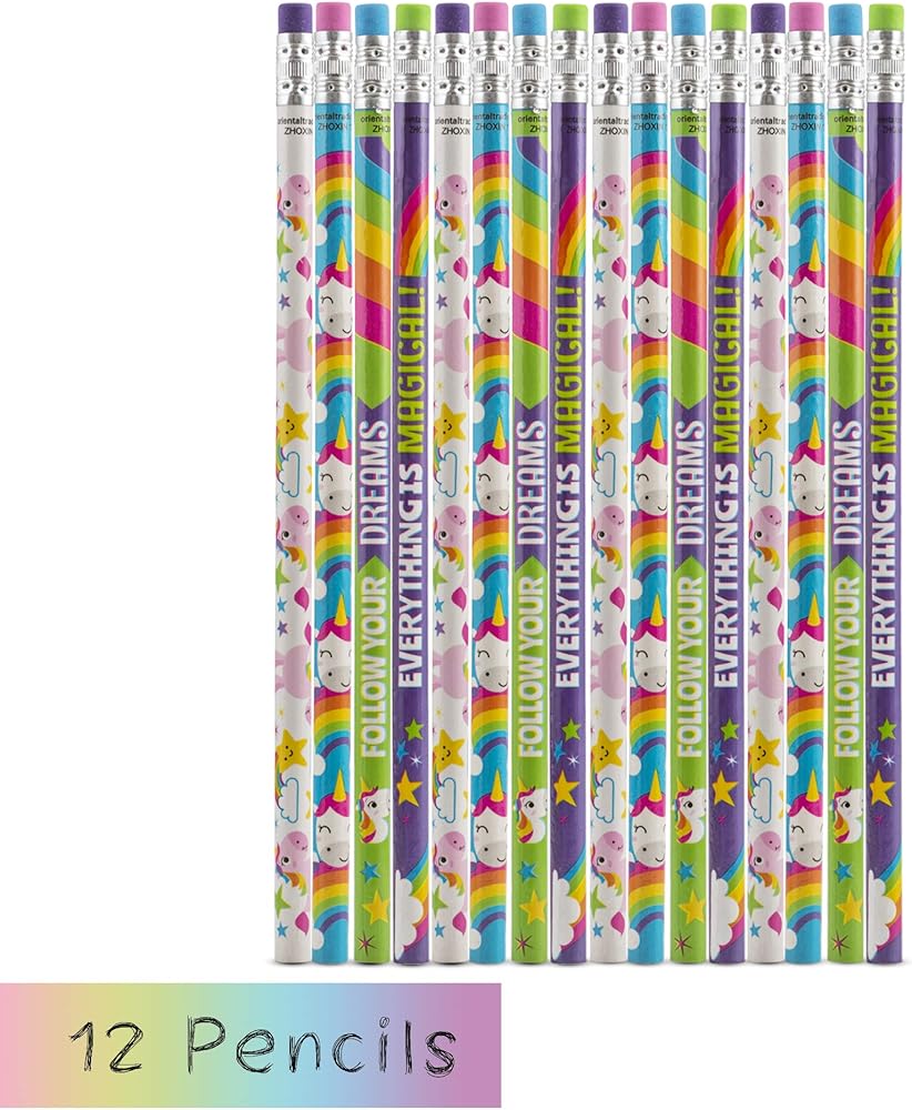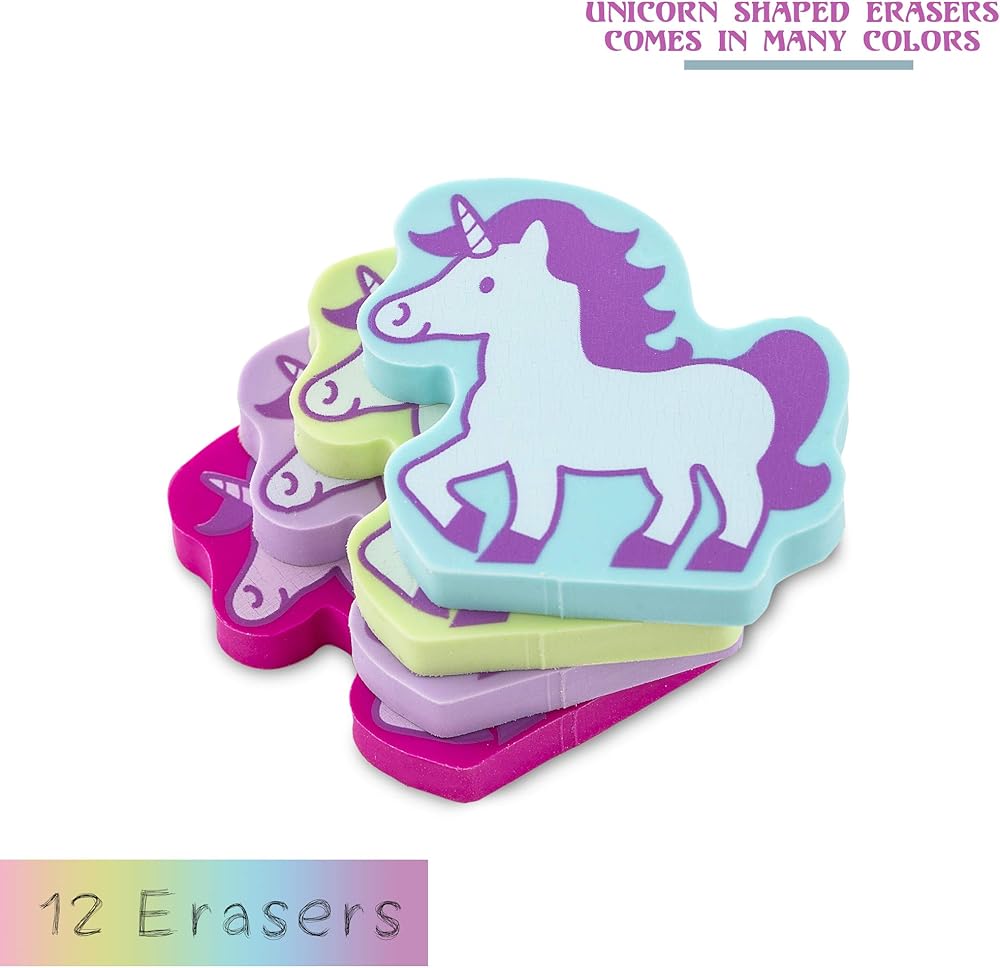 UNICORN: Look no further. This set will have your kids excited for all of its amazing prizes. This bulk prize set comes with 12 pencils and 12 lined notepads, so kids can write, take notes, or even draw their favorite unicorn face. It also includes 12 unicorn-shaped erasers in a variety of different colors, as well as 12 sheets of different, exciting unicorn and rainbow stickers that kids love.