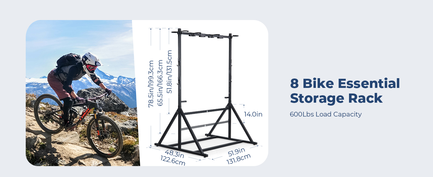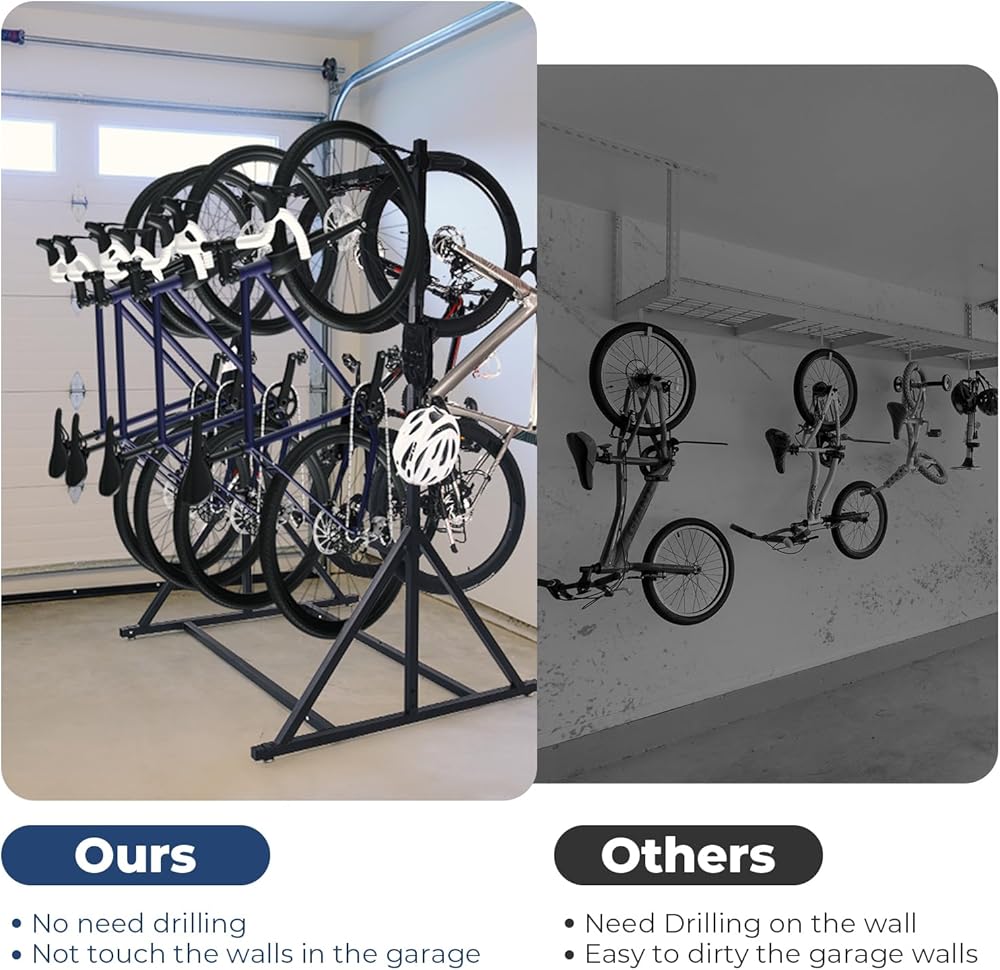 【 موفر للمساحة】يمكن أن يكون رف الدراجة الخاص بنا طريقة بسيطة وفعالة لتجديد مساحة المرآب الخاص بك وتنظيم معدات ركوب الدراجات الخاصة بك.