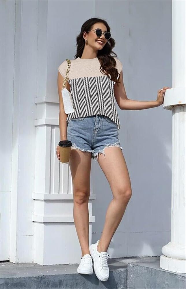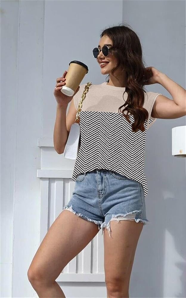 التصميم: رقبة دائرية، كم قصير، مخطط، كتلة الألوان، لون ثابت، سترة علوية، نمط محبوك كاجوال، سترة كبيرة الحجم.