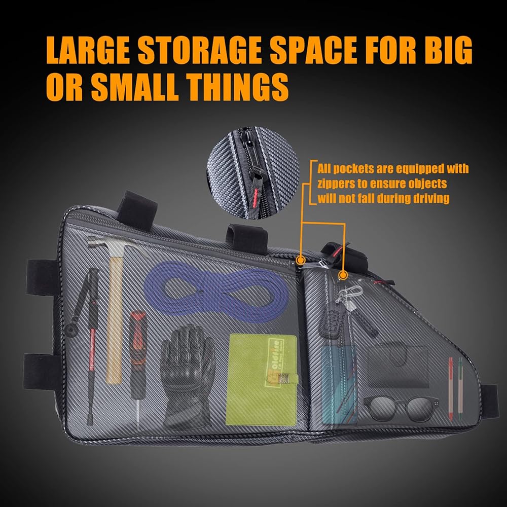 • زيادة مساحة التخزين: ❥ يتم تثبيت أكياس التخزين العلوية على الجزء العلوي من تالونك، مما يوفر مساحة تخزين رائعة وإضافية لك. الجيوب الكبيرة الرئيسية طويلة وكبيرة، لحمل الأشياء الطويلة مثل المطرقة والأدوات والخرائط . حقيبة التخزين العلوية مجهزة أيضًا بجيب مثلث للمفاتيح والنظارات الشمسية والقفازات والدفاتر والمحافظ والهواتف وغيرها من الأشياء الصغيرة. جميع الجيوب مزودة بسحابات لضمان عدم سقوط الأشياء أثناء القيادة وجعل مخلبك مرتبًا على الفور.