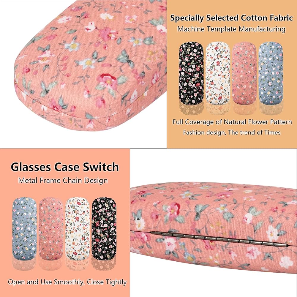 【Durable Material】: flower cotton stripe, soft protective liner inside, to prevent the glasses box collision movement friction damage glasses, durable, protective glasses are very suitable, metal frame closed, tight not loose.