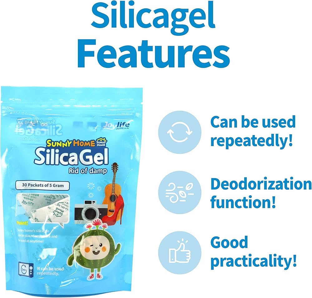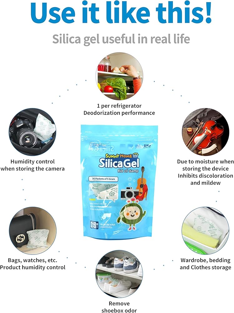 جل سيليكا أبيض نقي من صني هوم 30 جرام - 20 جرام (درجة الغذاء)/حفظ الطعام وشفرات الحلاقة والإلكترونيات والنسيج والإكسسوارات/إزالة الرائحة في حقيبة صالة الألعاب الرياضية أو الحذاء/مجفف قابل لإعادة الشحن/ممتص للرطوبة