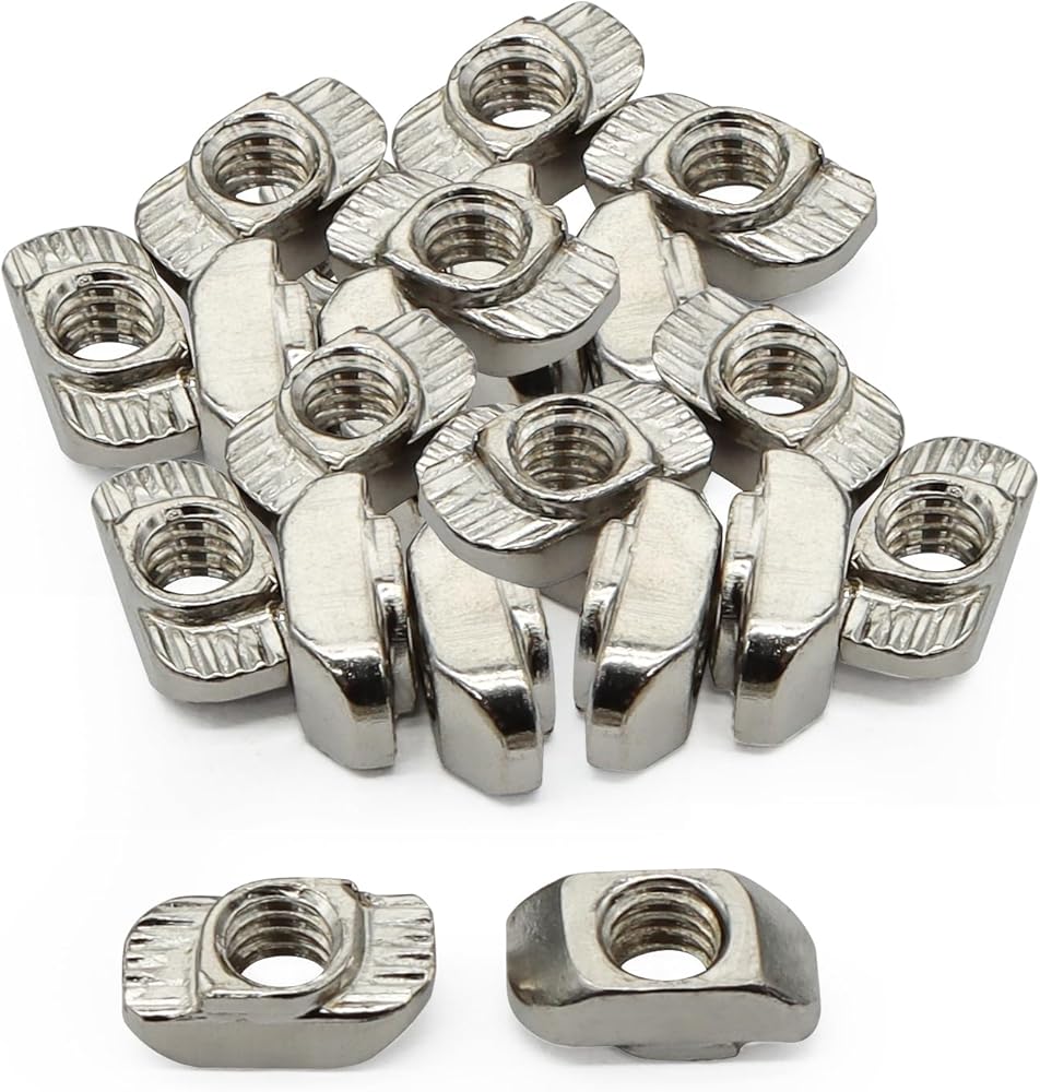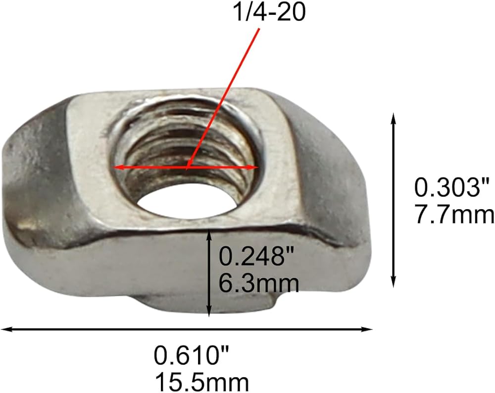 Abeicy 30 Series 1/4"-20 قطرة فولاذية قياسية ملولبة في صامولة على شكل حرف T، صواميل أجهزة ملحقة على شكل حرف T لـ 30 سلسلة من قضبان الألومنيوم، 20 عبوة