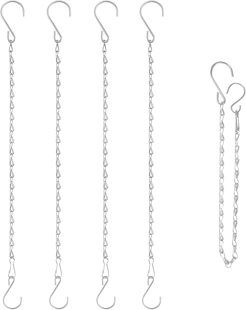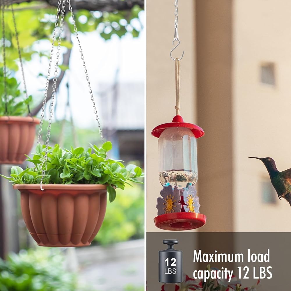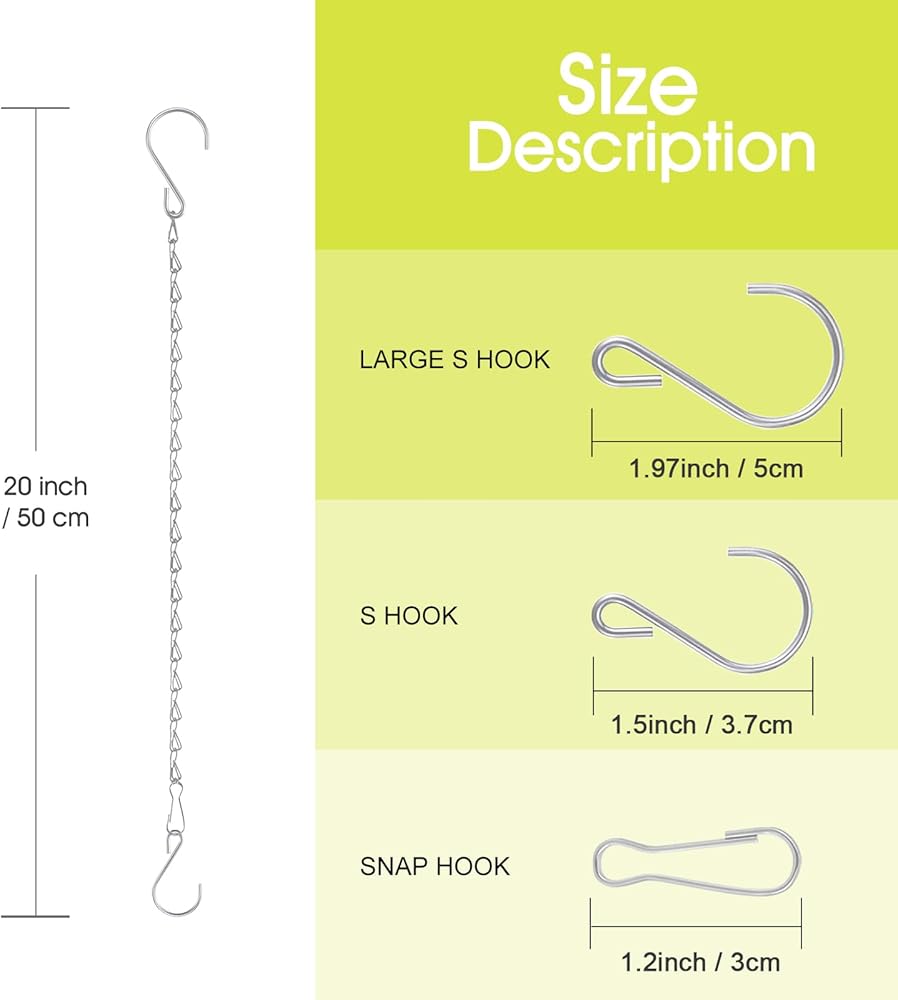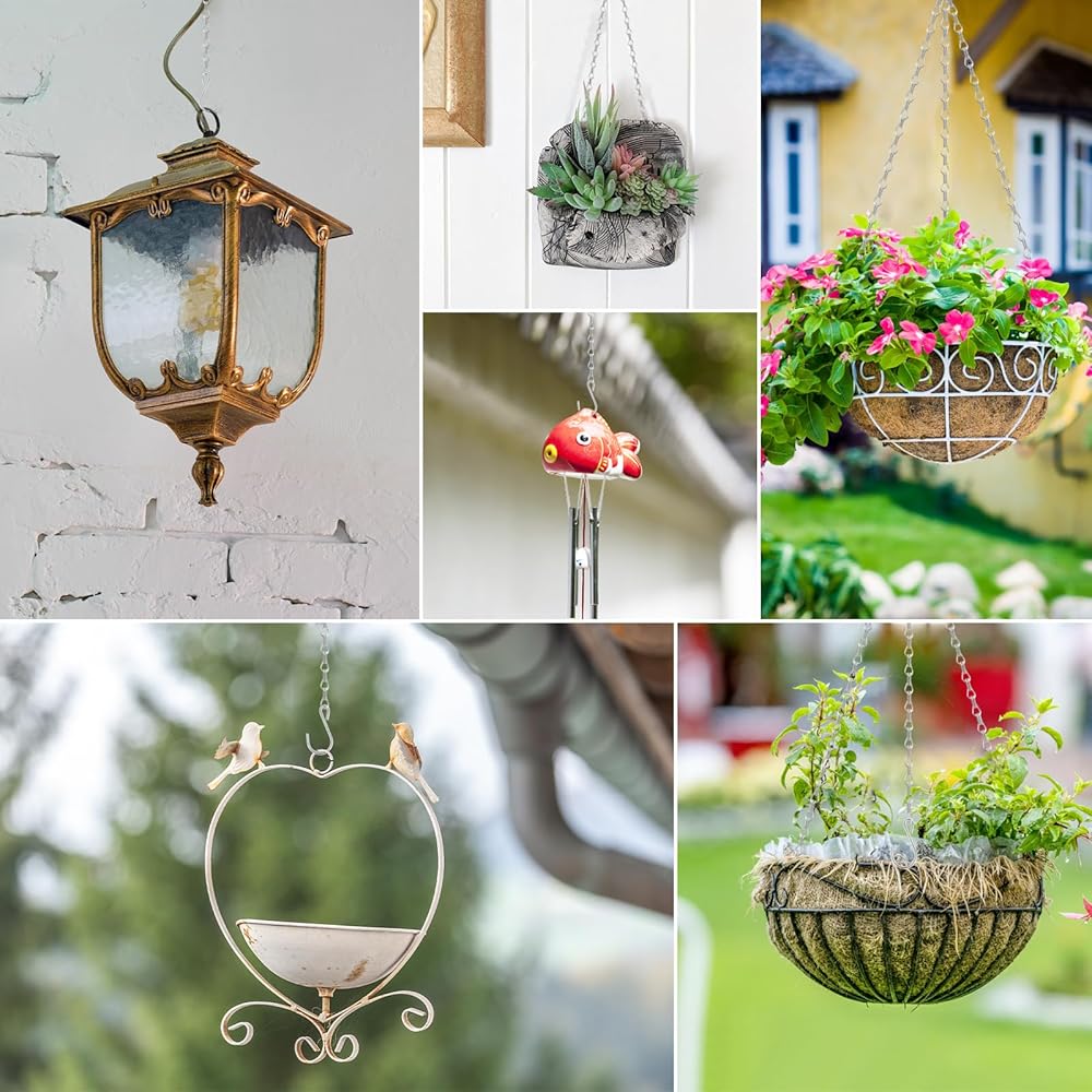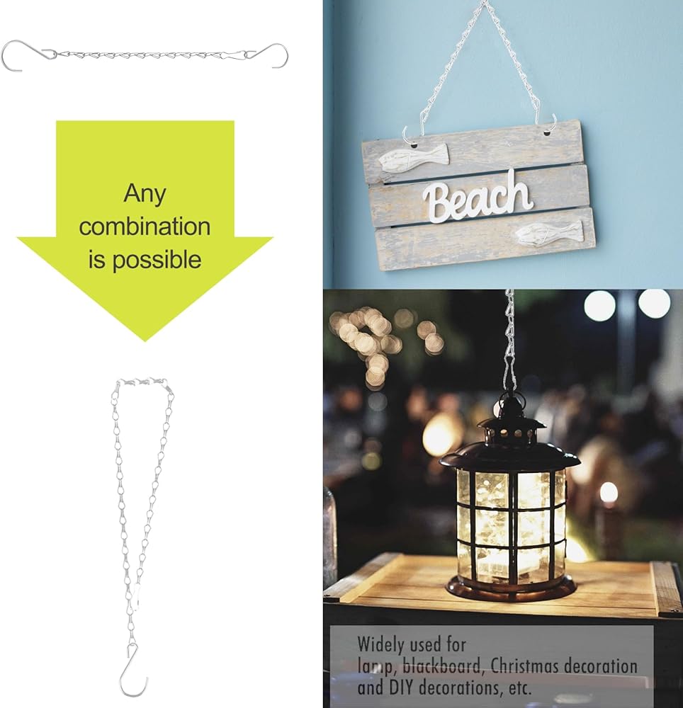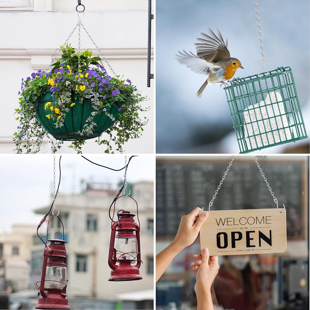 👍استخدام واسع - استخدامات لا حصر لها لهذه الخطافات المتسلسلة. قم بتزيين مساحتك الخارجية أو الداخلية من خلال زينة أضواء عيد الميلاد، وسلة تعليق عيد الميلاد، ومغذيات الطيور، وبيوت الطيور، وسلال النباتات، وأواني الزهور، والفوانيس، وأجراس الرياح، وأهداف الرماية، وعلامات الجزيرة والمزيد. نصائح: تحتوي كل سلسلة من سلاسلنا على خطافين على شكل حرف S، مما يجعل التعليق أقوى وأكثر أمانًا.