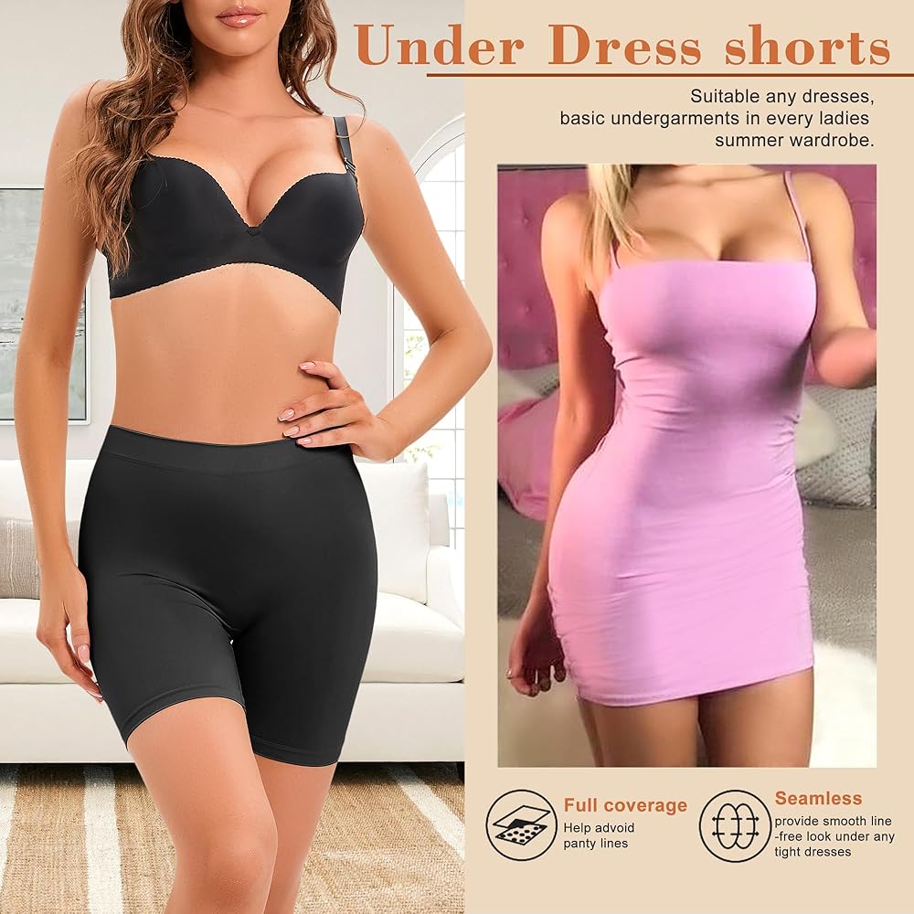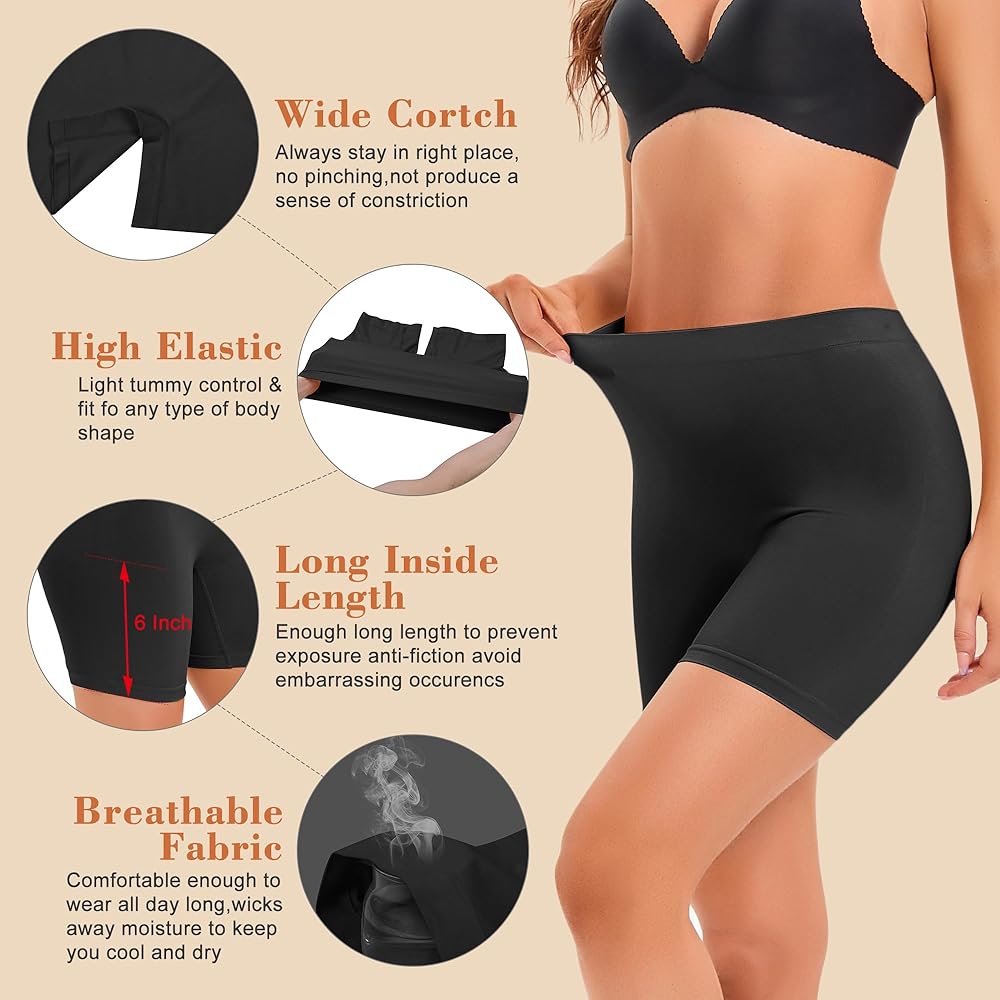 • شورت أمان ناعم ومريح - ملابس داخلية للفساتين مصنوعة من 90% بوليميدا، 10% إلاستانو، ناعم ومسامي، ناعم، خفيف الوزن، قماش يمنحك لمسة نحيفة ويحتضنك مثل السحابة، شورت قصير تحت الفساتين يجعلك تشعر بالراحة طوال اليوم.