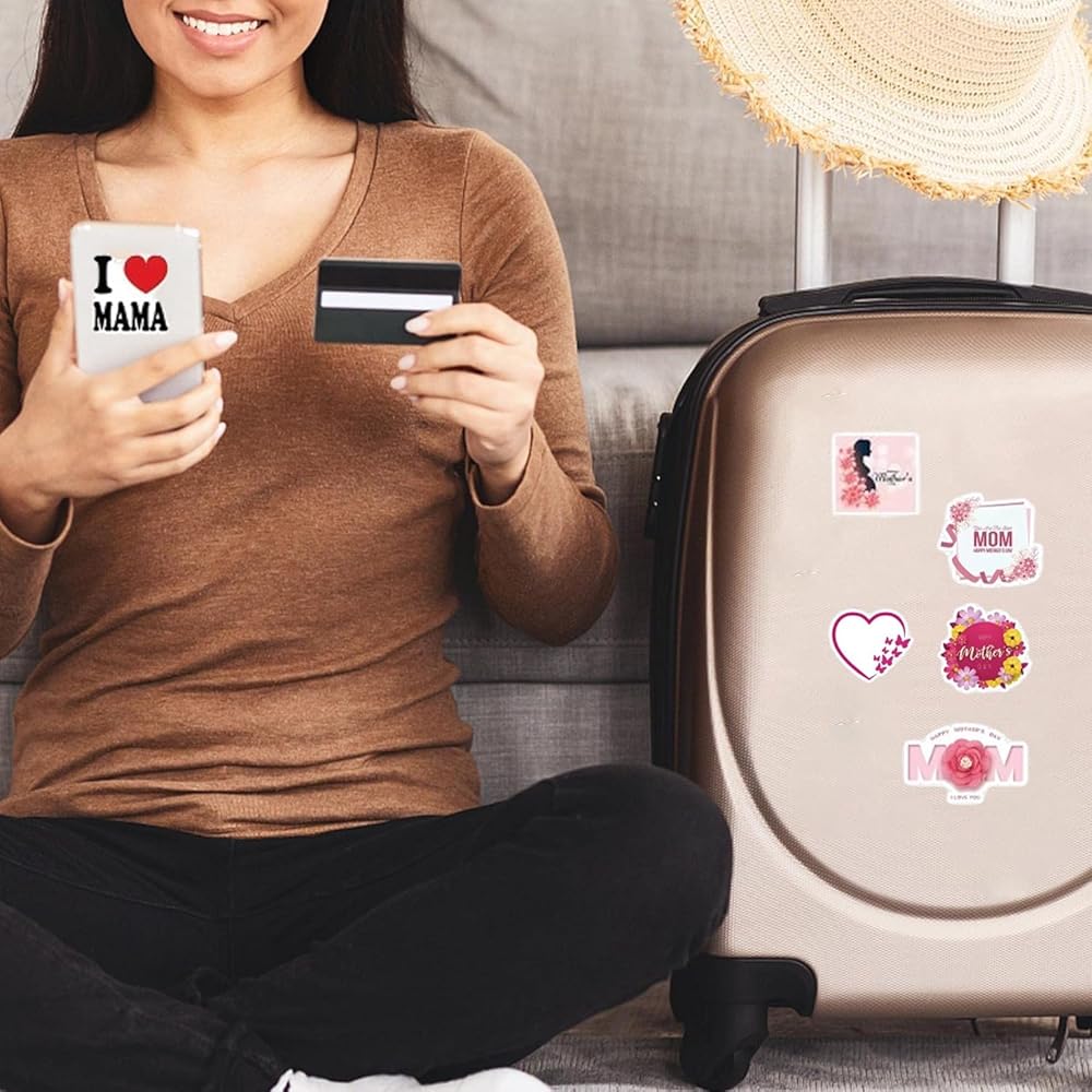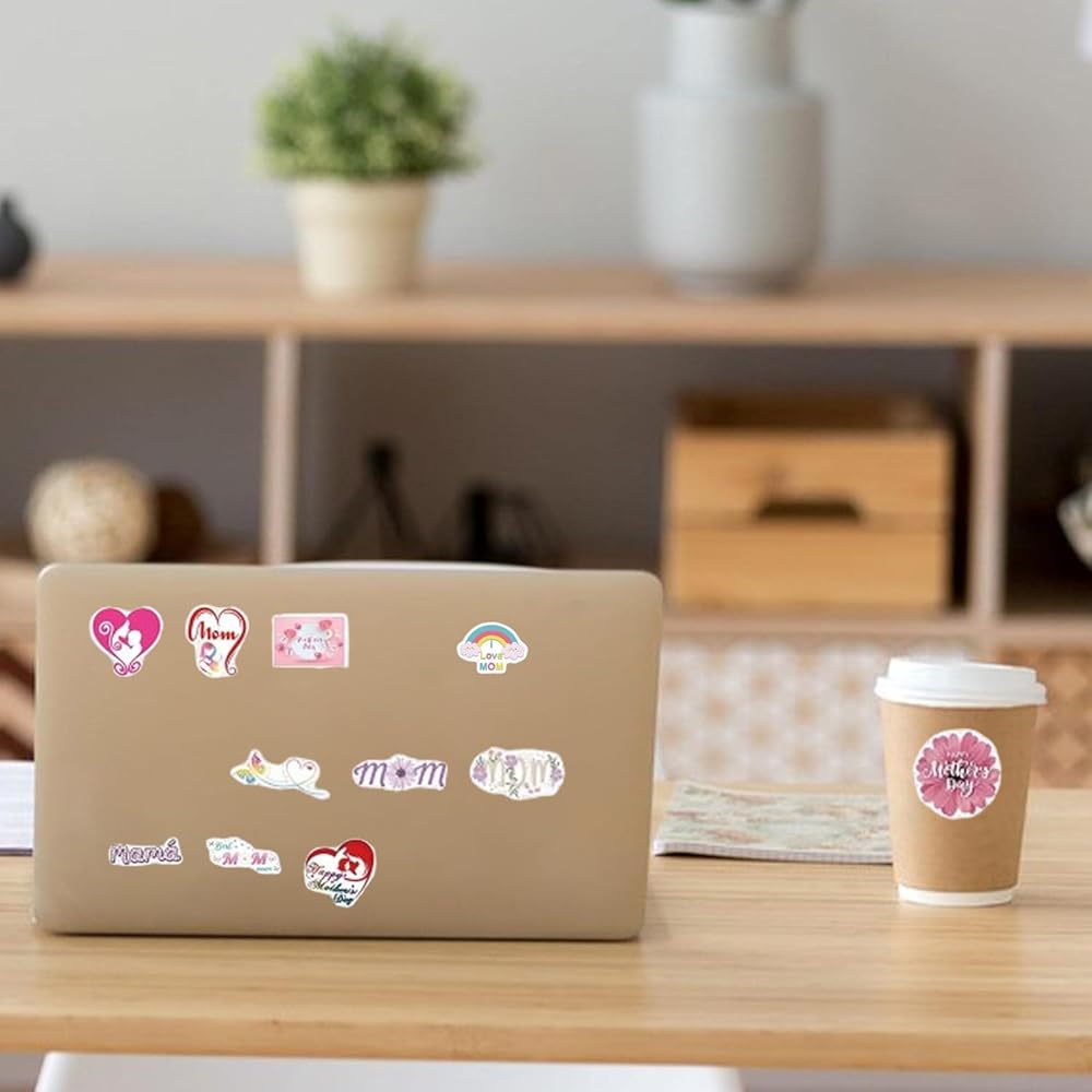 ملصقات عيد الأم، 50 قطعة من ملصقات زجاجات المياه الملونة المقاومة للماء، مناسبة لأجهزة الكمبيوتر المحمولة والكتب وألواح التزلج وملصقات الأمتعة وحافظة الهاتف والجيتار للأم