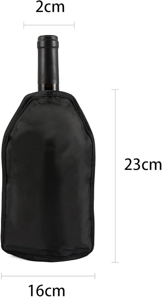 Provides Fast Chilling & Keeps Bottles Cold - Cooler Sleeves Ideal For Champagne Wine and Beer Perfect For The Outdoors Wine Cooler Bag. It chills your bottled drinks lasting for hours without ice or a bucket. Bottle chilling bag suitable for champagne, white wine, beer, or any type of bottled beverages from 750ml to 1.5liter. Features Color:black Dimension:23*16*2cm Material:PVC Package 1*Wine Cooler