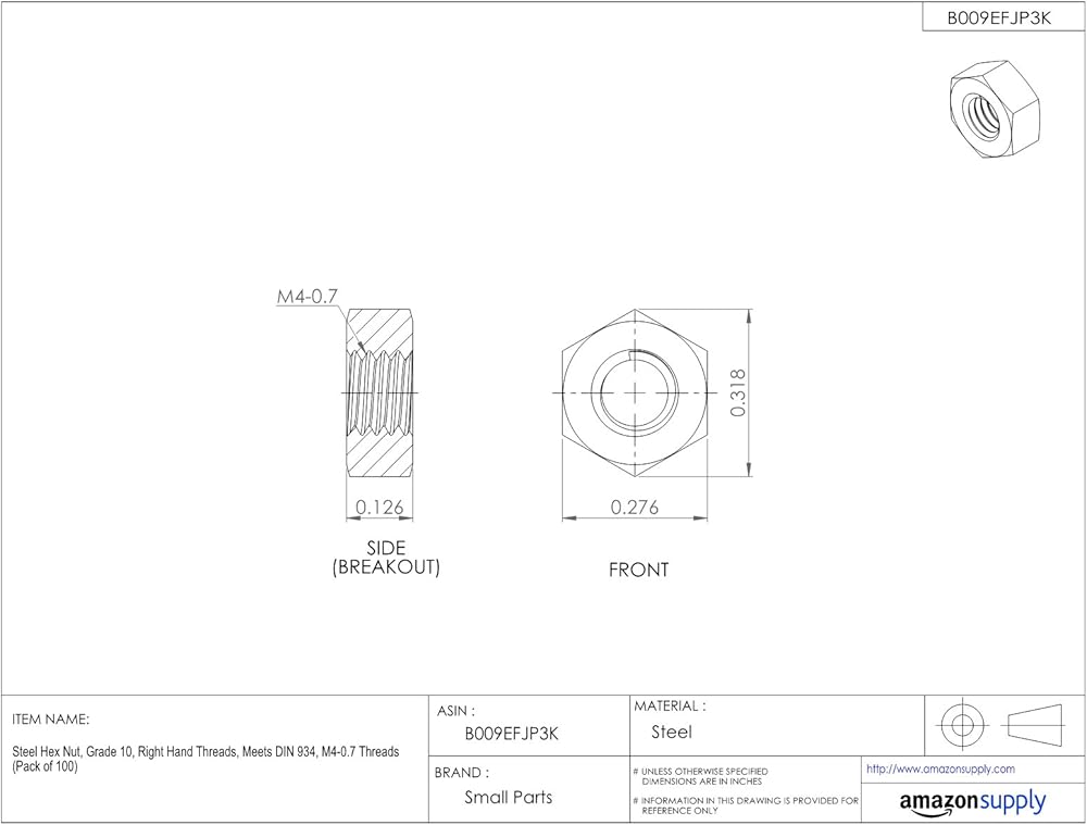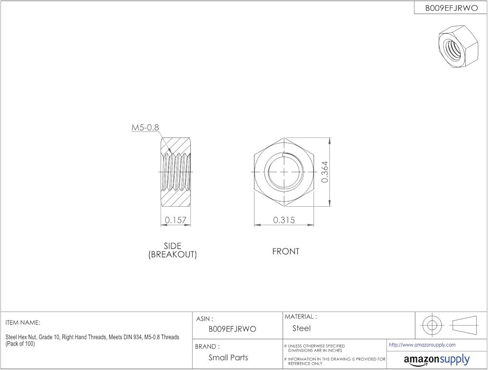 أجزاء صغيرة من صامولة سداسية من الصلب، مطلية بالكروم الأصفر الزنك، الفئة 10، DIN 934، متري، حجم الخيط M5-0.8، عرض 8 مم عبر الشقق، سمك 4 مم (عبوة من 100 قطعة)
