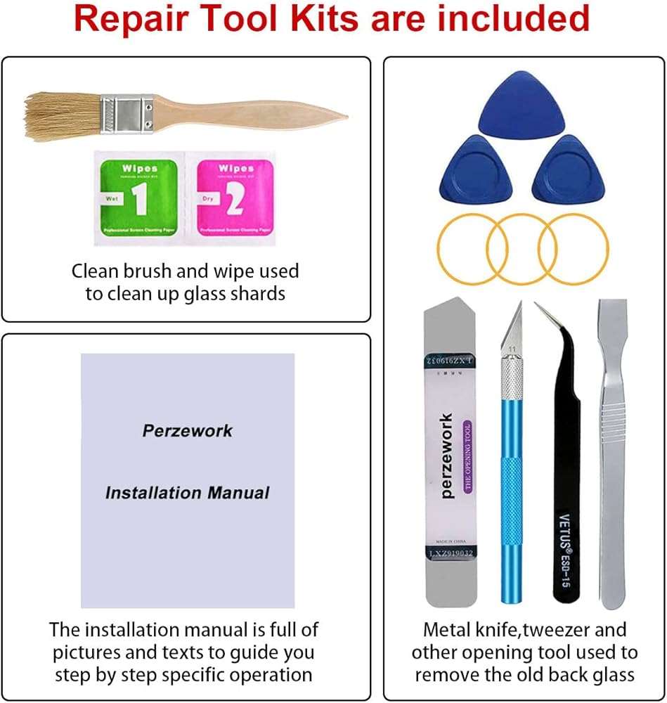 【فتحة كاميرا أكبر】لا حاجة لإزالة عدسة الكاميرا لأن الزجاج الخلفي الجديد مزود بفتحة كاميرا أكبر. يمكنك تركيب بديل الزجاج الخلفي الجديد مباشرة بعد إزالة الزجاج القديم المكسور. إنه أسهل بكثير بالنسبة لك.