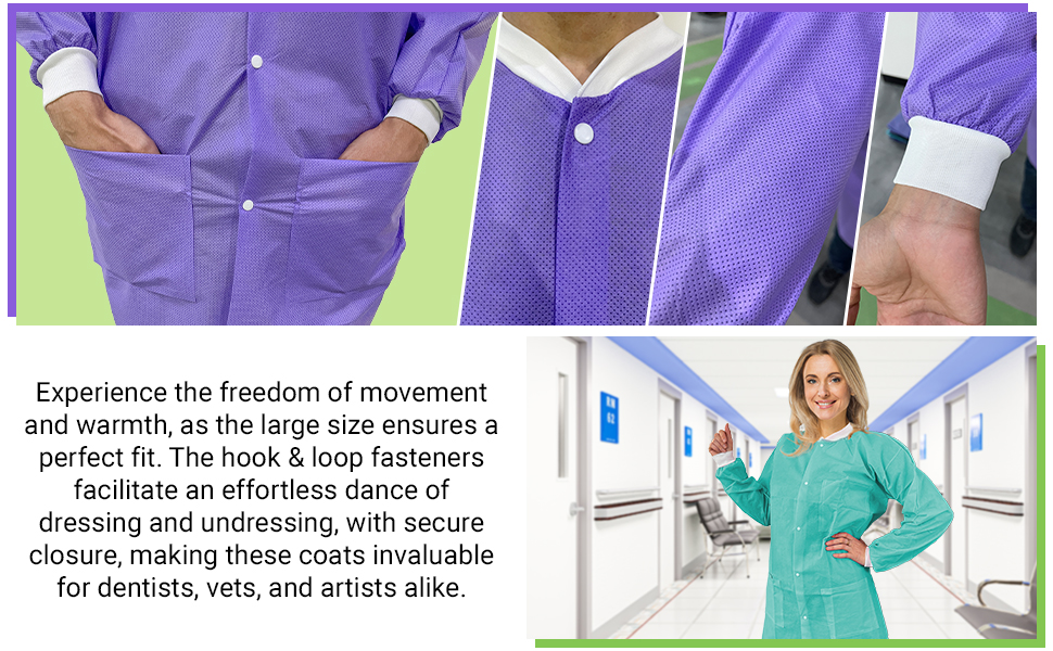 • حماية موثوقة: معطف المختبر البلاستيكي خفيف الوزن ومريح. يغطي معطف المختبر جسمك وملابسك، ويخلق حاجزًا ماديًا لنقل الغبار والمواد الأخرى.