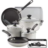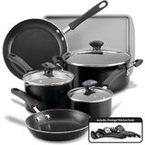 Equip the kitchen for convenience and reliability to make family-sized one-pot meals with the Farberware Cookstart 6-Quart Nonstick Jumbo Cooker. Crafted from heavy-duty aluminum for excellent heat distribution, this big jumbo cooker is ideal for making a zesty seafood paella or a delicious cheddar mac-n-cheese and boasts a superior DiamondMax™ nonstick interior that performs 3X better than ceramic nonstick for easy food release and cleanup with a distinctive look. Oven safe to 350°F with comfortable handles for a confident grip, this big frying pan has a shatter-resistant glass lid to seal in heat and moisture and a colorful exterior that looks great in any kitchen. Plus, it's dishwasher safe for quick, convenient cleanup. Be ready to create big and delicious one-pan meals every day with the convenient, easy cleaning Farberware Cookstart 6-Quart Nonstick Jumbo Cooker with DiamondMax™ Nonstick.
