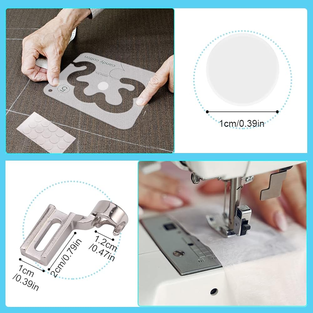 4.Presser foot : Fits for high shank domestic sewing machine. Place the guide along an already stitched seam or against any edge to give you beautiful topstitching. The Foot guides your topstitching and decorative stitching perfectly.