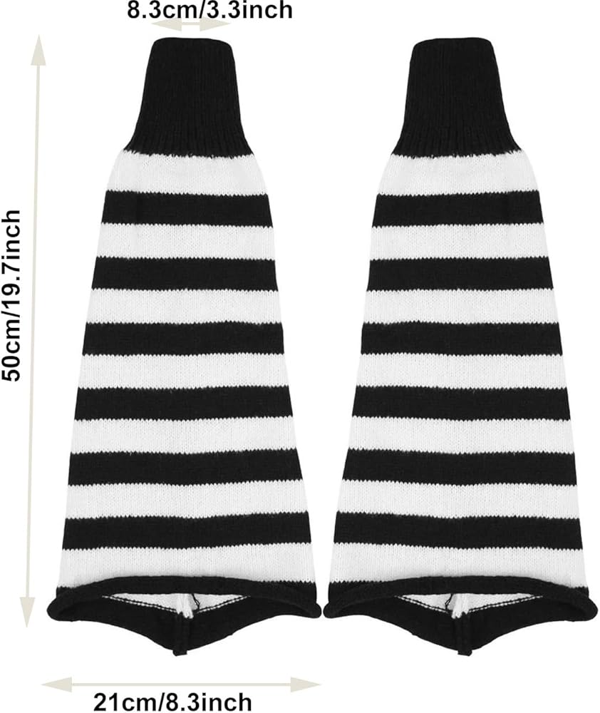 Description: Material: acrylic fibers Color: Black,White,Black-White,Black-Gray,Black-Purple Size: as picture shows Great For Fancy Dress, Clubbing, Dance, Ballet, Rave, Retro 80s Package Included: 1 Pair of Leg warmers
