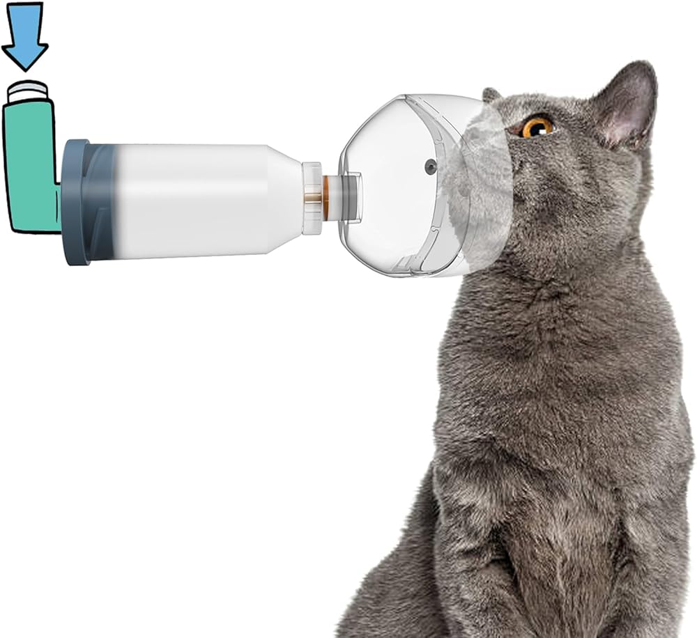 A Pet First Aid Product For Pets With Breathing Problems. Especially for cats and small size dogs. Feline Aerosol Chamber Inhaler Spacer for Cats and Kittens with Exclusive Pet Mask For Small Size Dogs and All Cats. It's a pet-designed mask especially suitable for long nose-mouth pets.