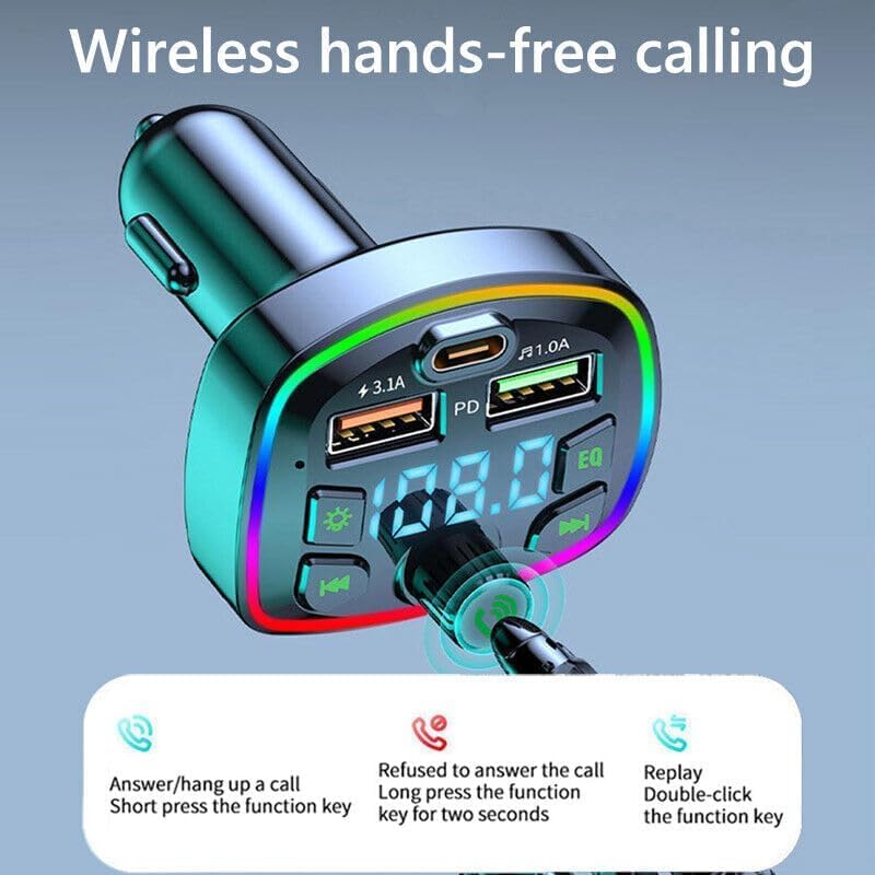1USB Type C, 2 USB charging ports.5 V.3.1 A charging process and 5 V.1A (with music symbol) charging port allow faster and more stable charging speed. Quick and easy pairing. Plug it into the cigarette lighter; Select an empty frequency and then set the same frequency on the transmitter (87.5-108.0 MHz).